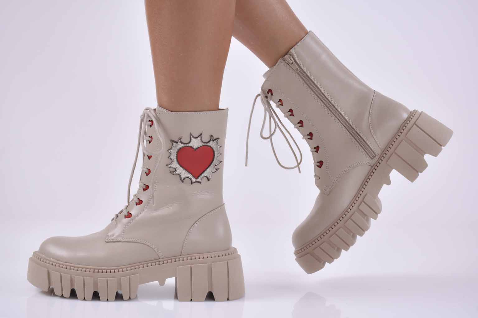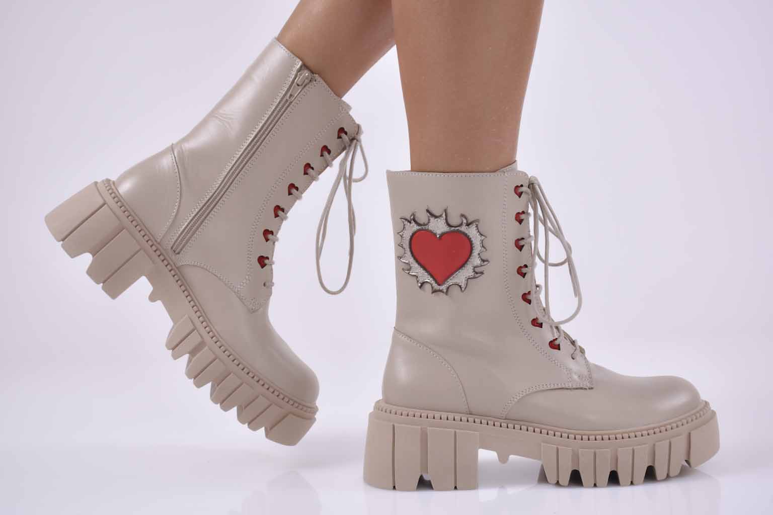 Дамски боти Естествена кожа бежови EOBUVKIBG #501-9403
