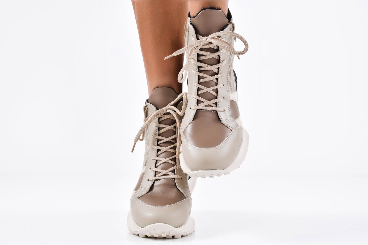 Дамски боти естествена кожа бежови EOBUVKIBG #502-5395