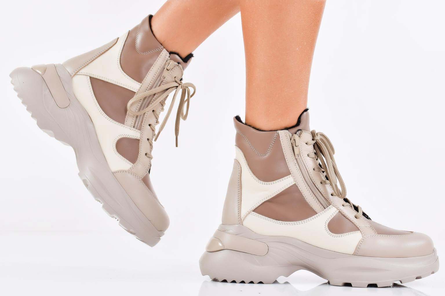 Дамски боти естествена кожа бежови EOBUVKIBG
