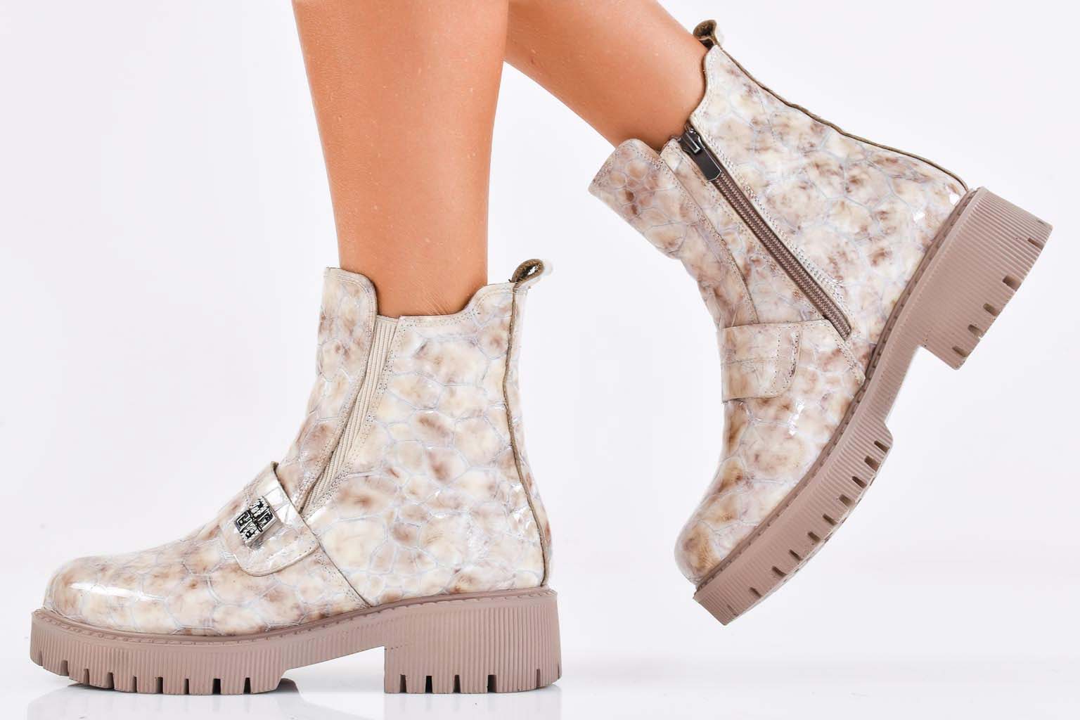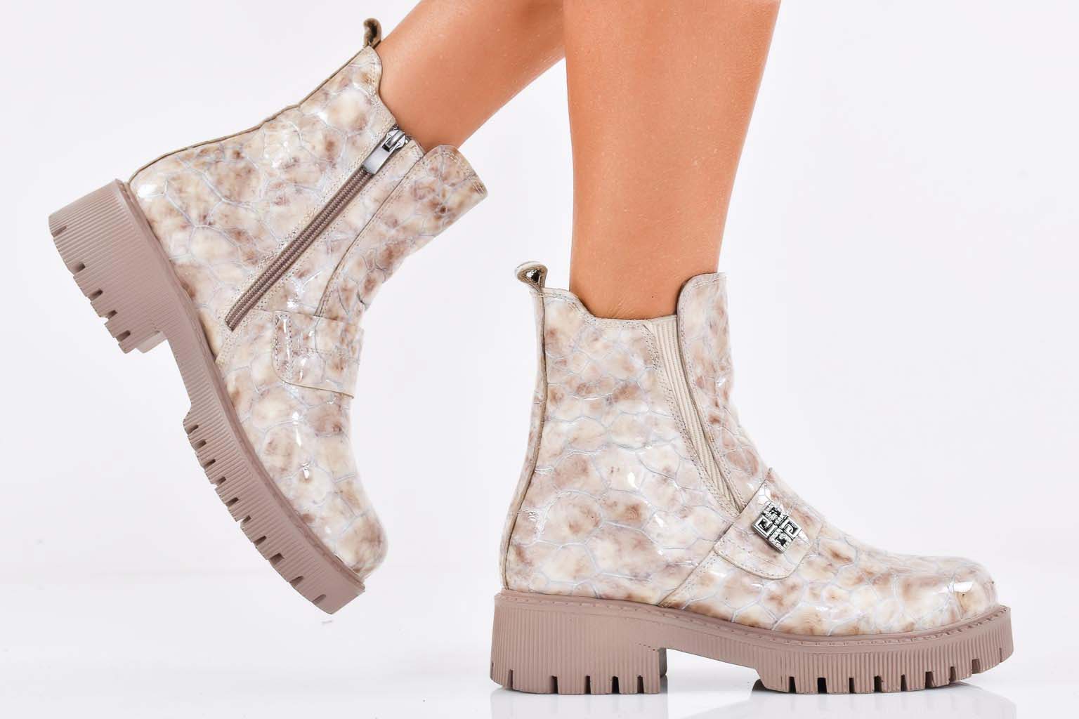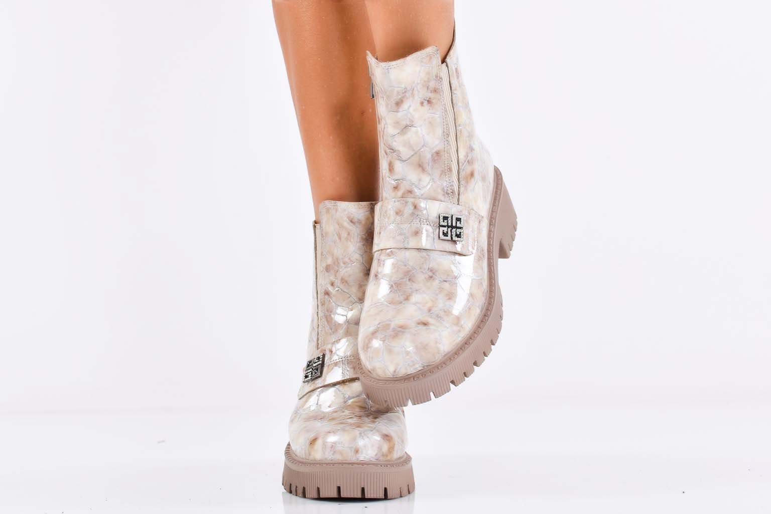 Дамски боти естествена кожа бежови EOBUVKIBG #502-7306