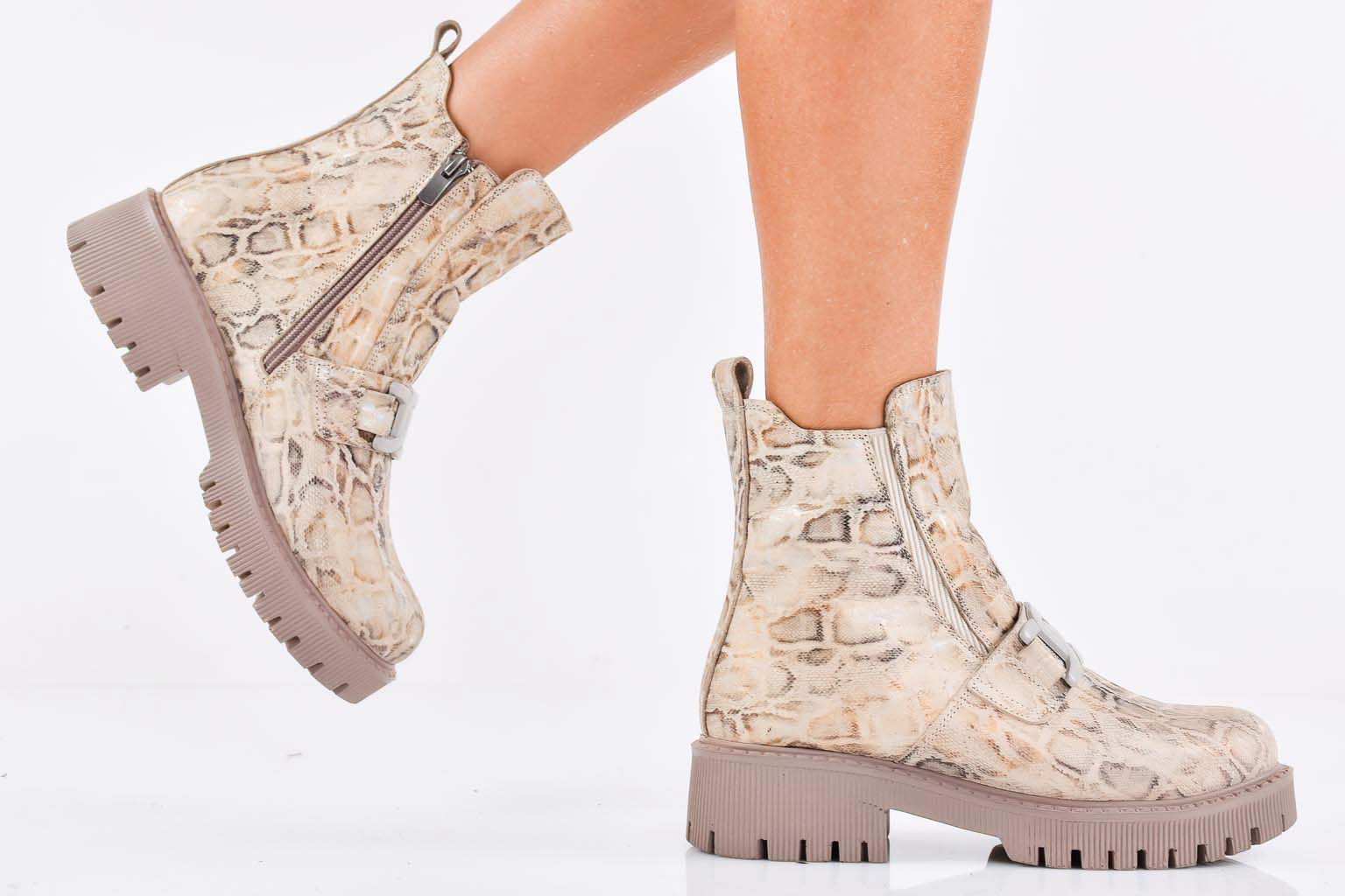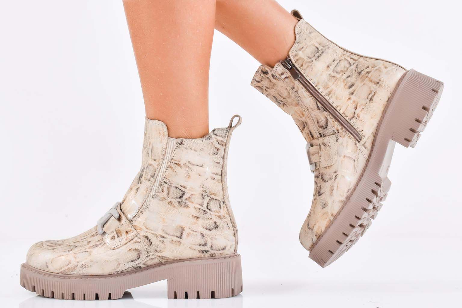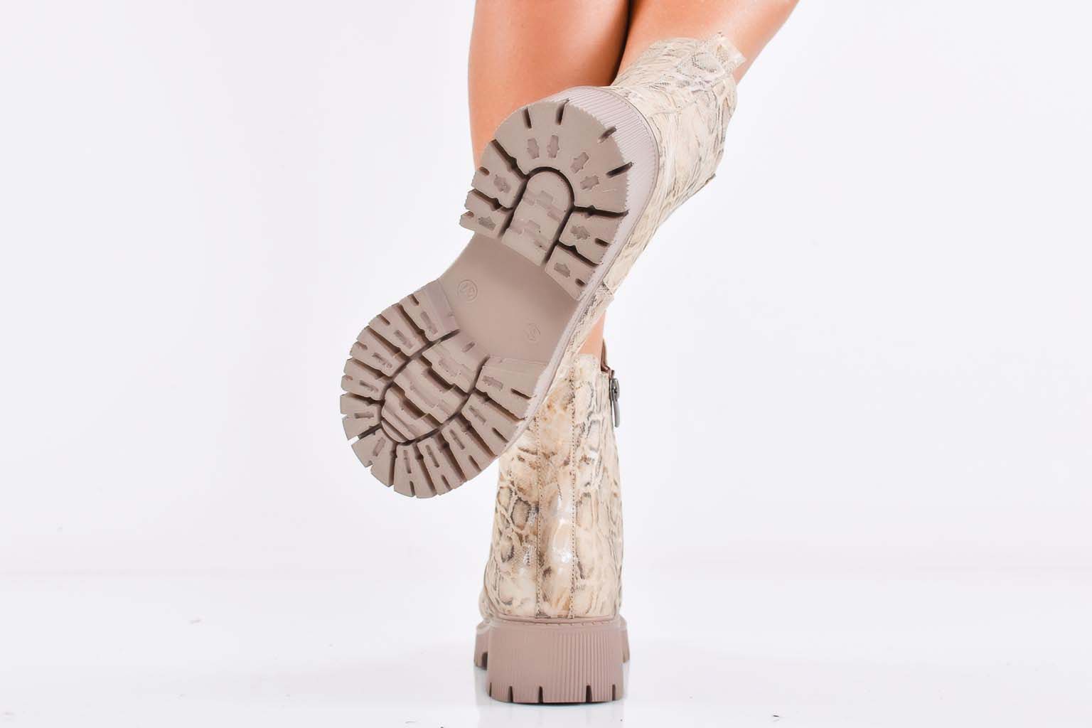 Дамски боти естествена кожа бежови EOBUVKIBG #502-7342