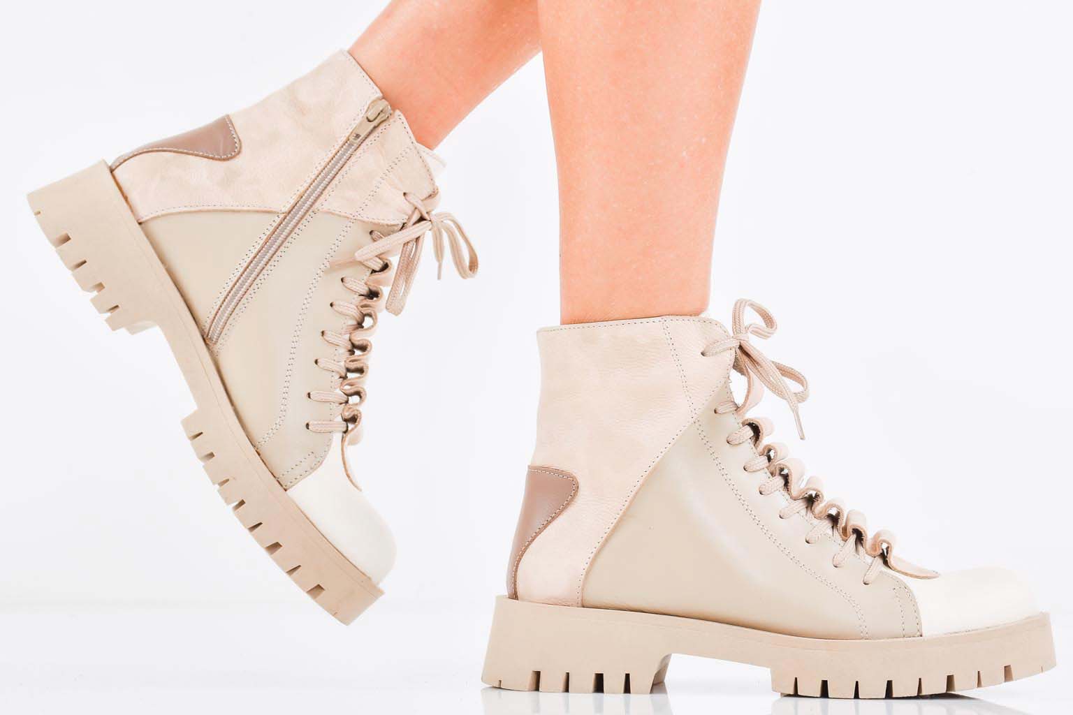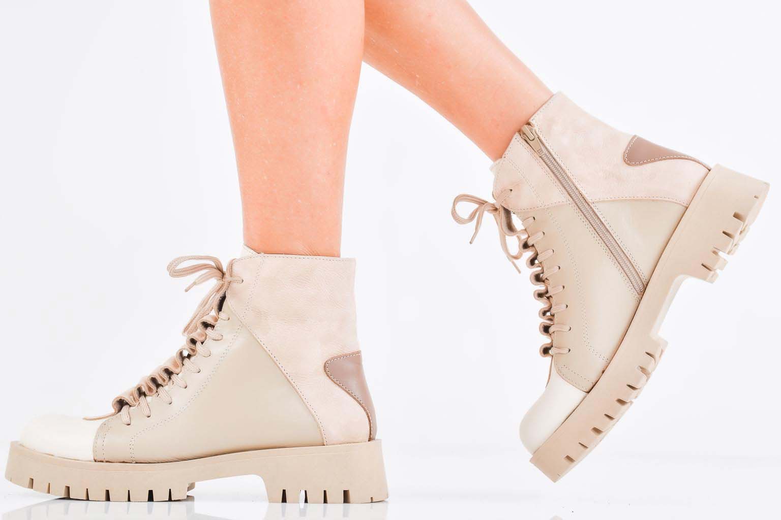 Дамски боти естествена кожа бежови EOBUVKIBG #502-7480