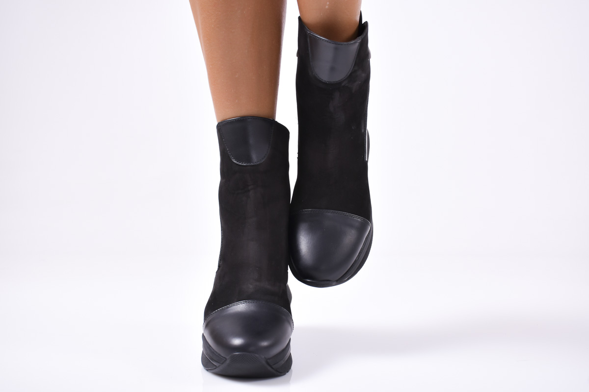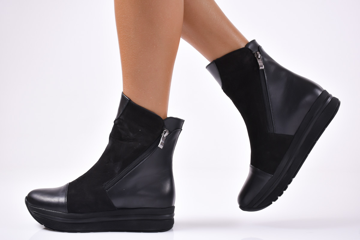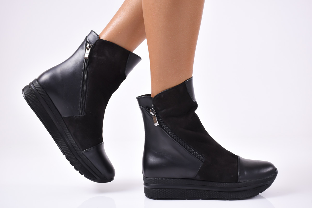 Представяме Ви, модерни черни дамски боти 500-9026, изработени от висококачествена естествена кожа. Подходящи за дами, които държат на комфорта и удобството през целия ден. Моделът е с цип . Вътрешността е от фин топъл хастар, който допринася за допълнителният комфорт на крака.Характеристика;