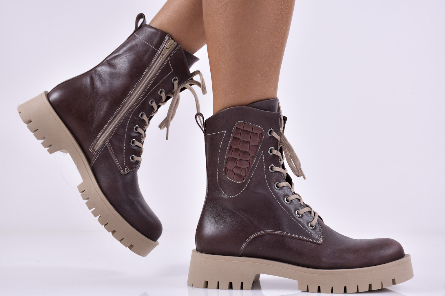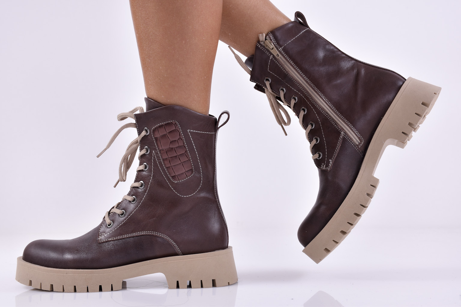 Дамски боти естествена кожа кафеви EOBUVKIBG #502-5193