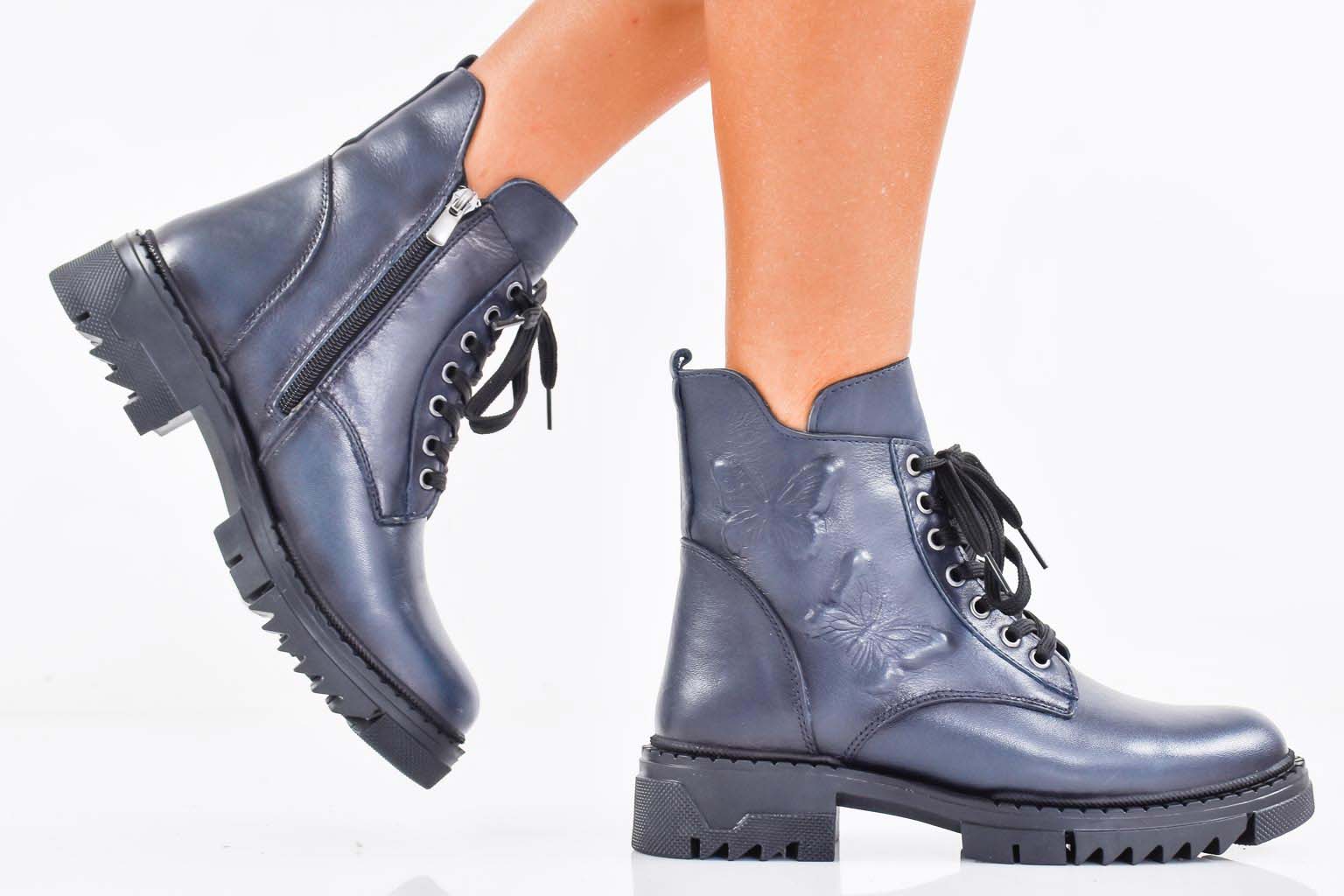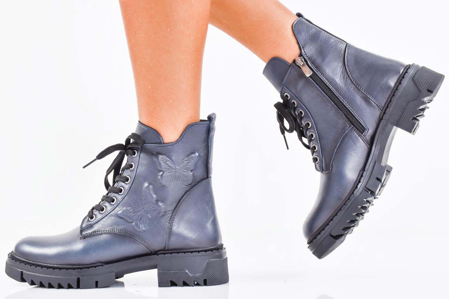 Дамски боти естествена кожа сини EOBUVKIBG #502-7366