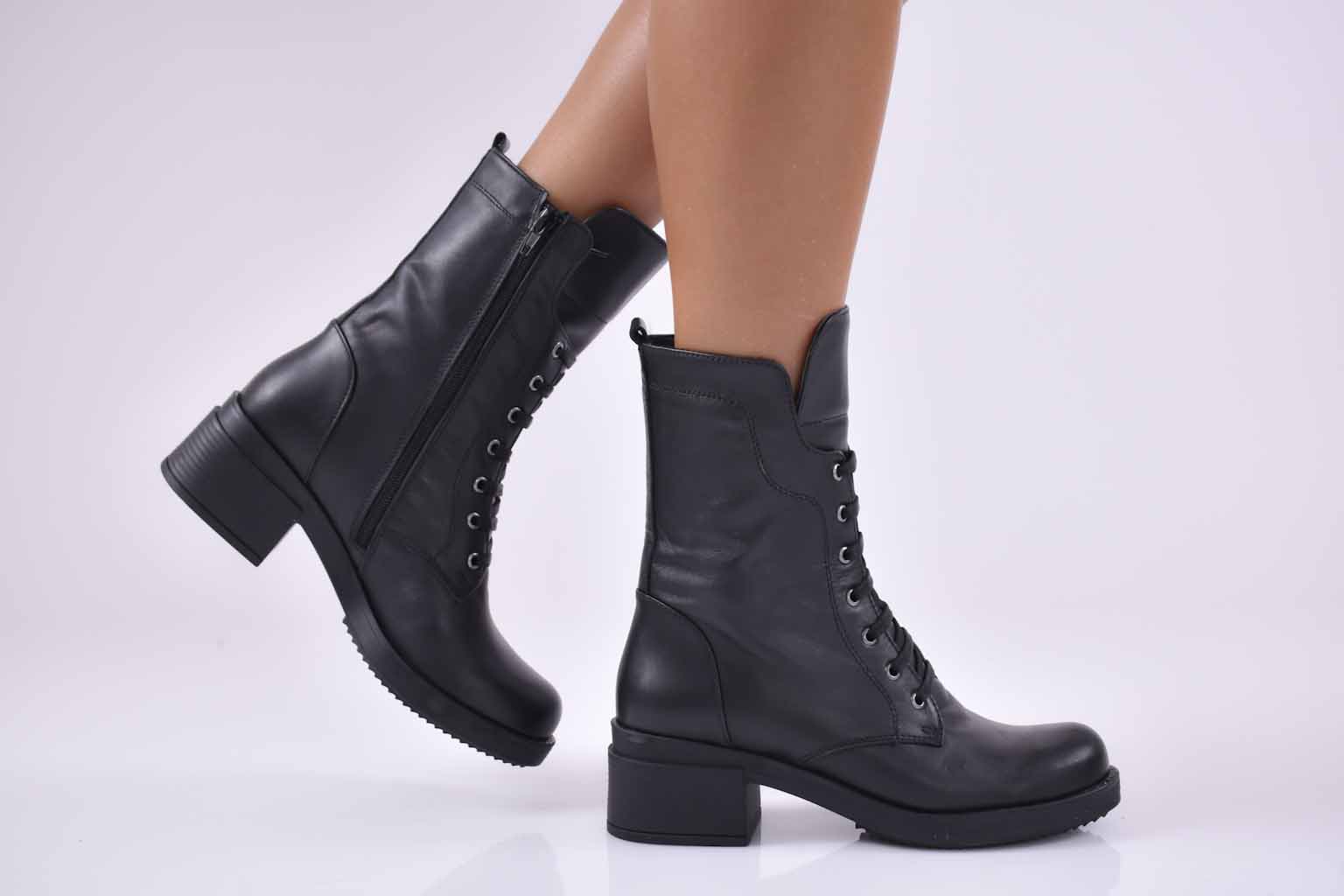 Дамски боти естествена кожа черни EOBUVKIBG #501-4163
