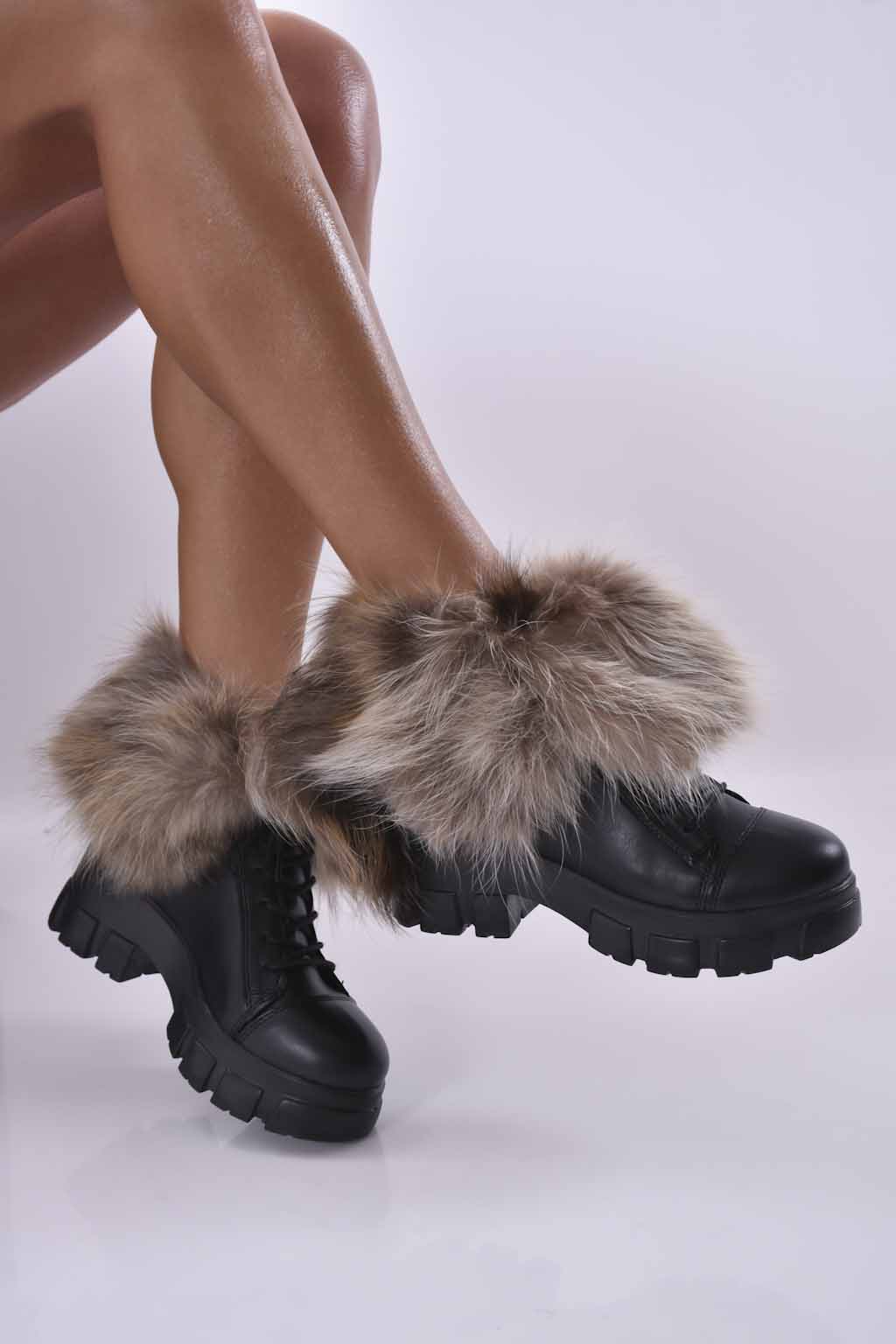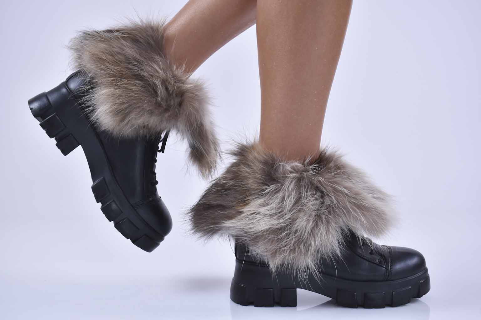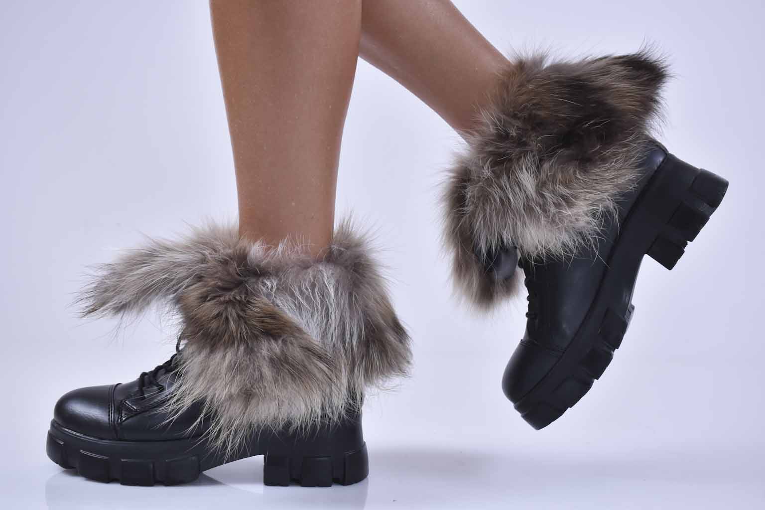Дамски боти естествена кожа черни EOBUVKIBG #501-9421