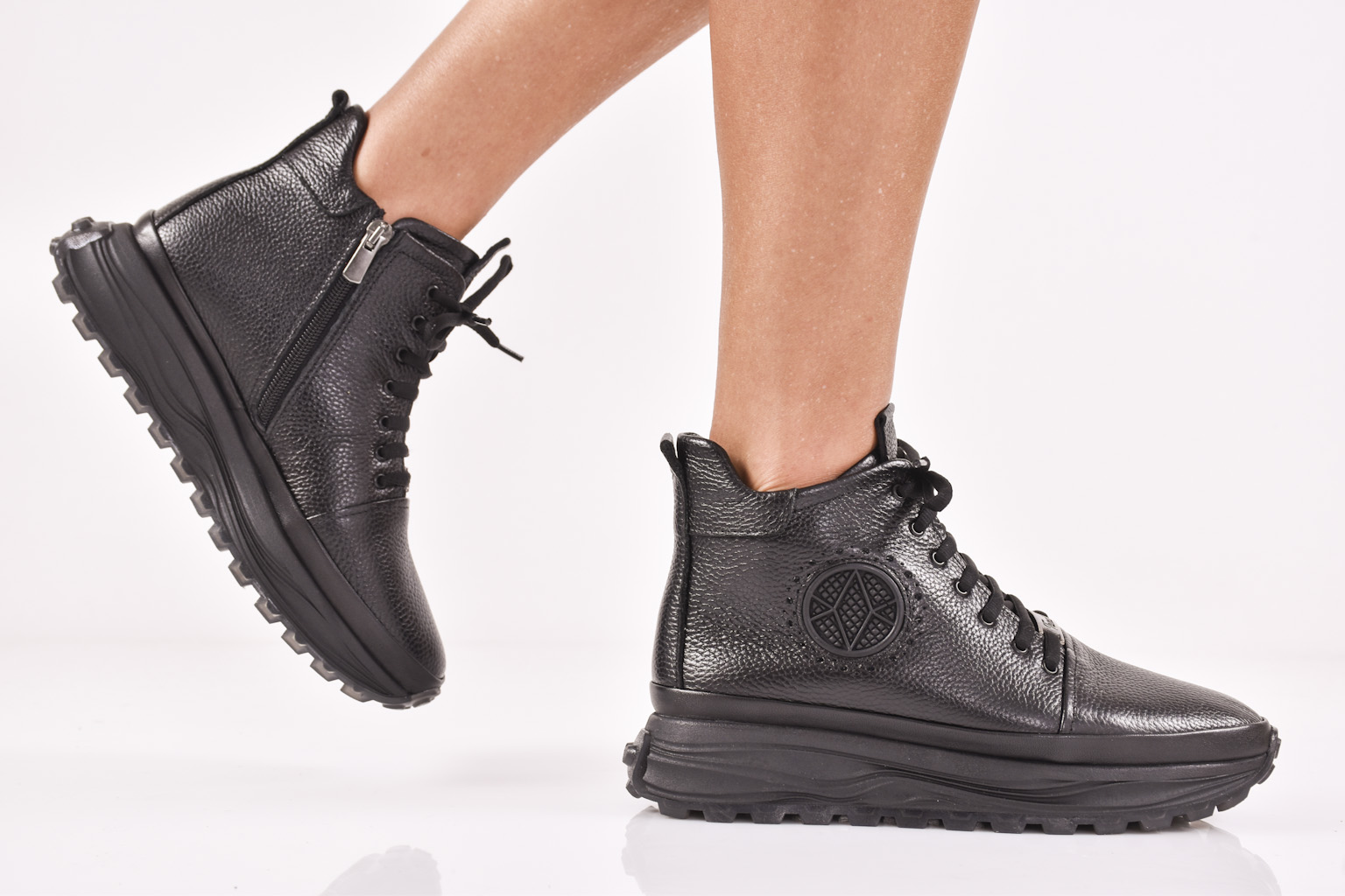 Дамски боти естествена кожа черни EOBUVKIBG #502-5258