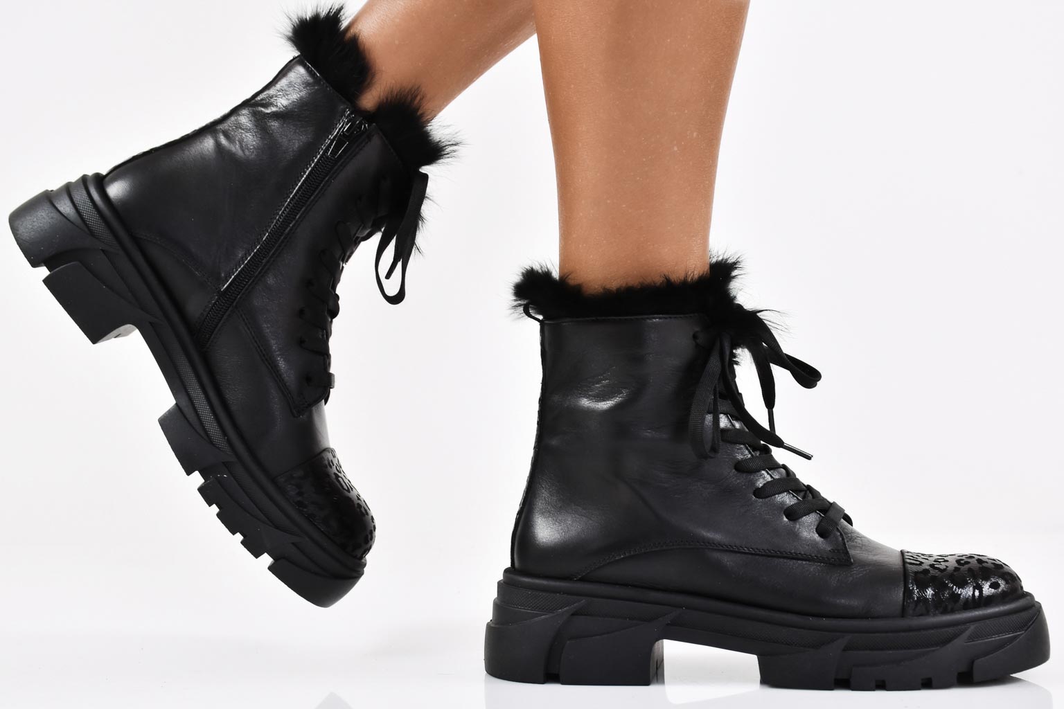 Дамски боти естествена кожа черни EOBUVKIBG #502-5353