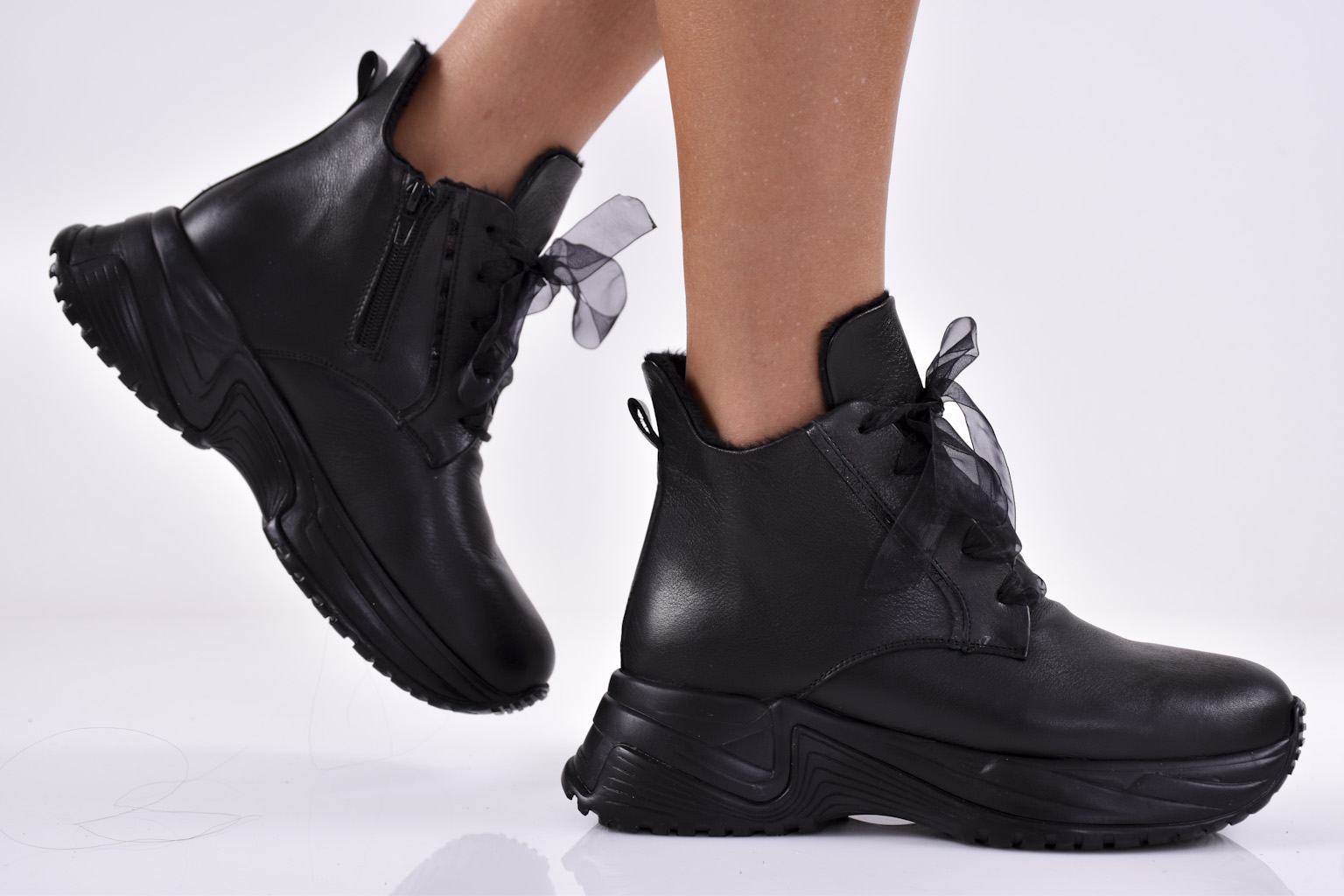 Дамски боти естествена кожа черни EOBUVKIBG #502-5191