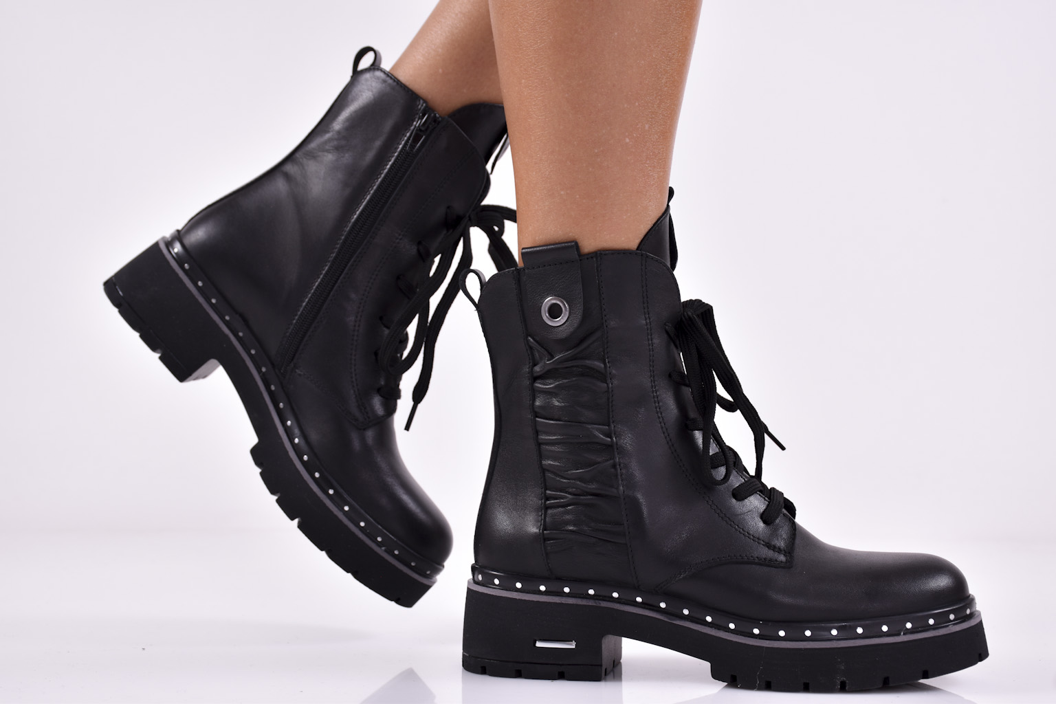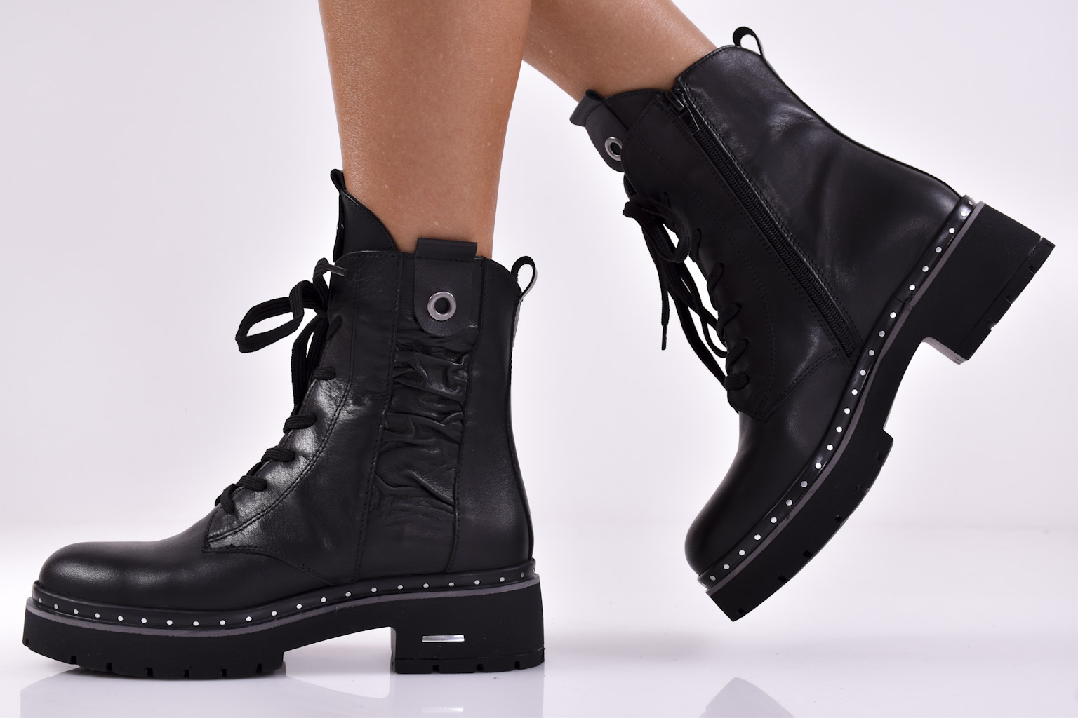 Дамски боти естествена кожа черни EOBUVKIBG #502-5183