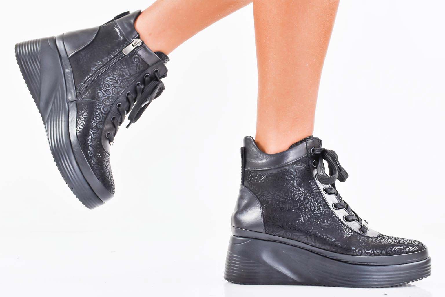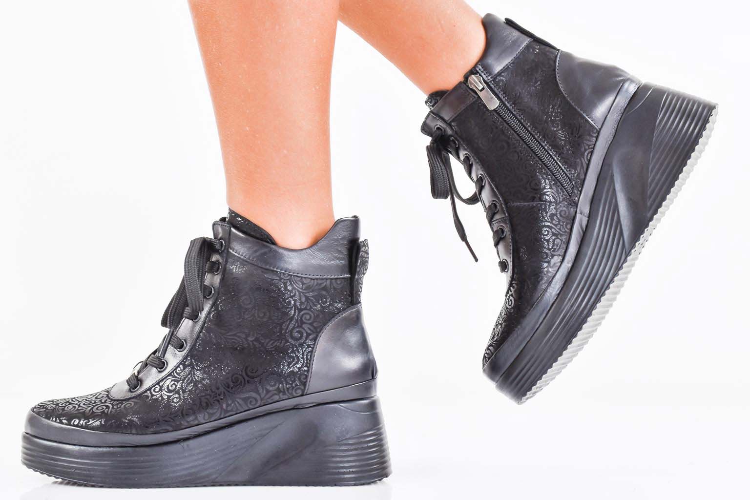 Дамски боти естествена кожа черни EOBUVKIBG #502-7341