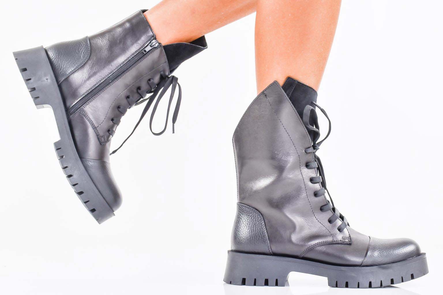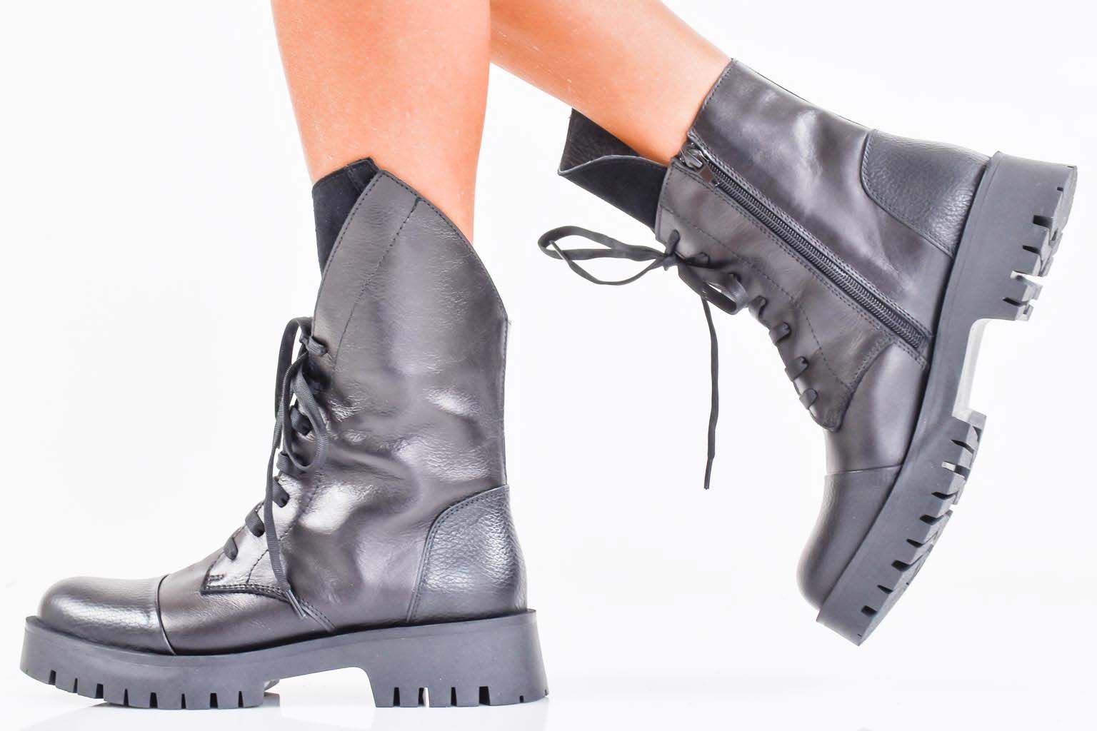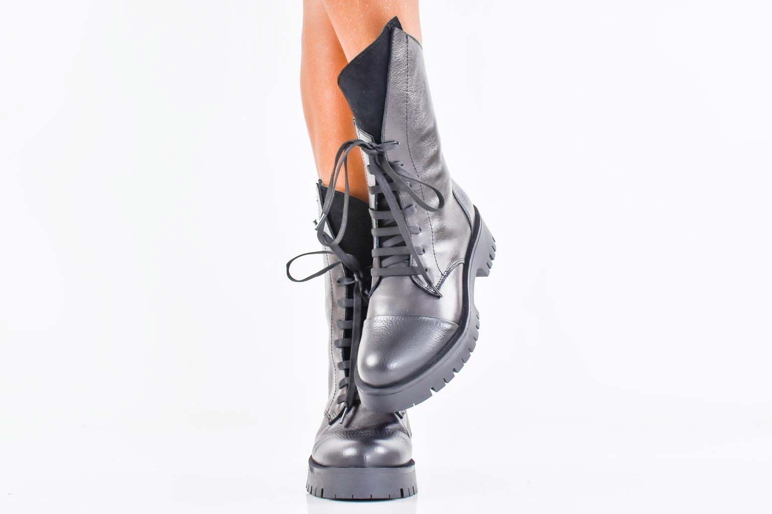 Дамски боти естествена кожа черни EOBUVKIBG #502-7475