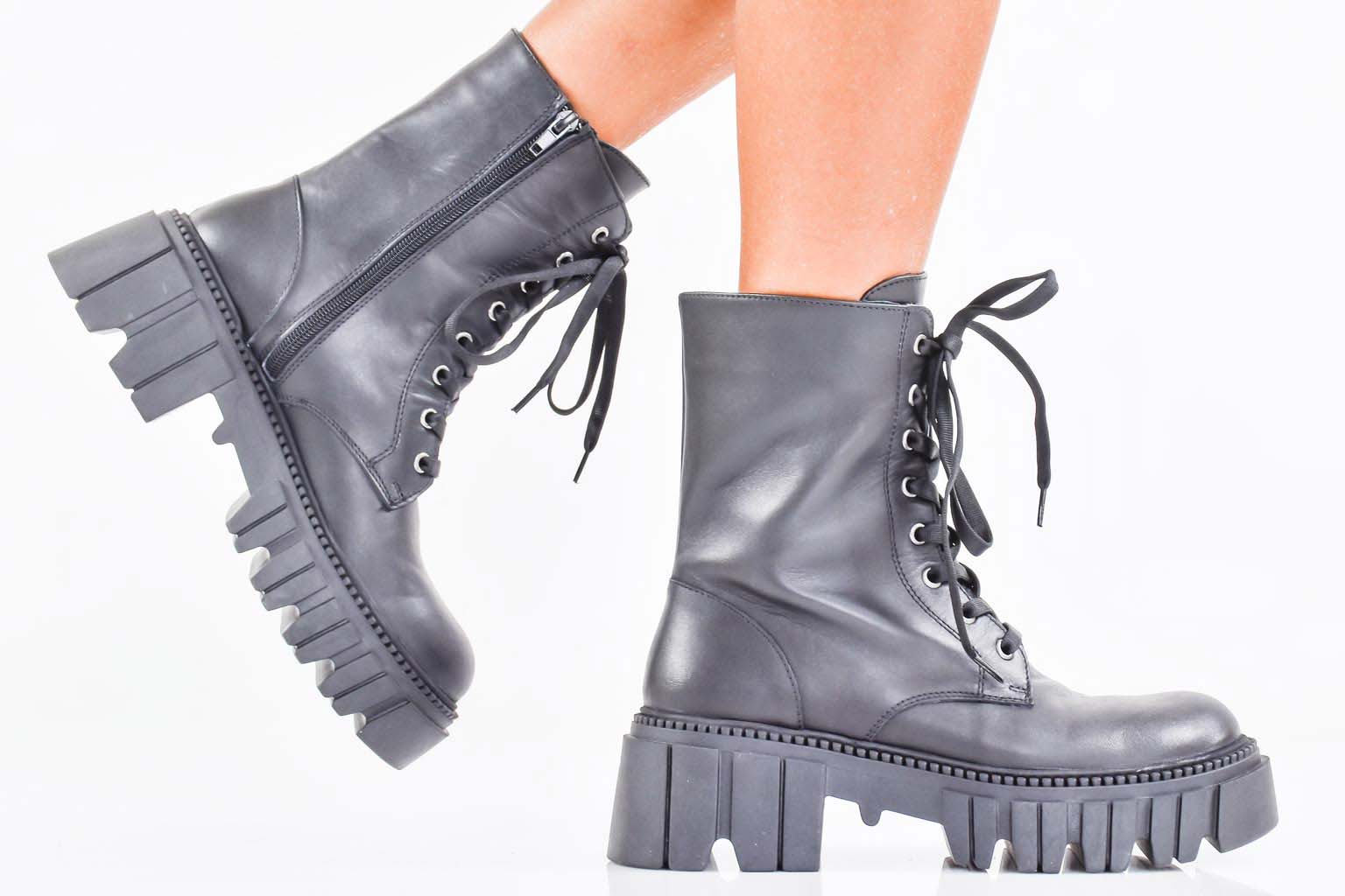 Дамски боти естествена кожа черни EOBUVKIBG #502-7479
