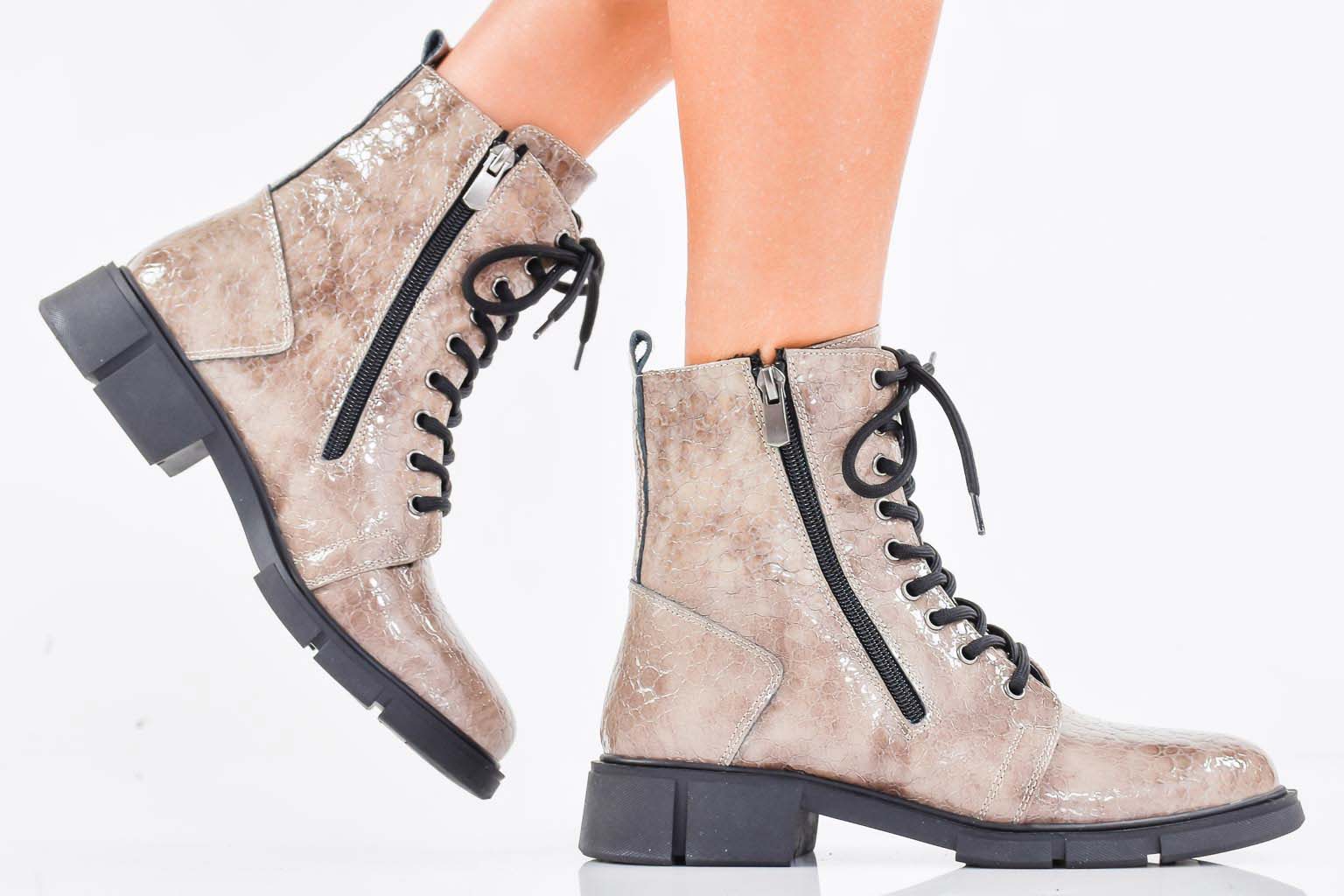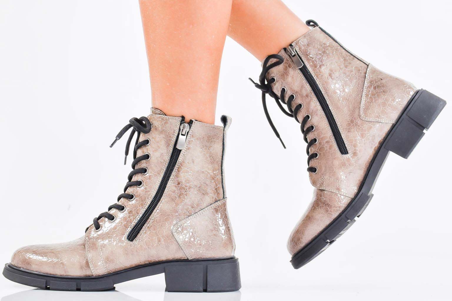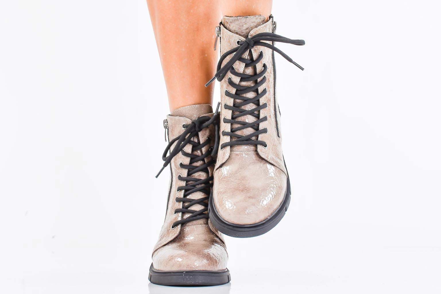 Дамски боти естествен лак бежови EOBUVKIBG #502-7485