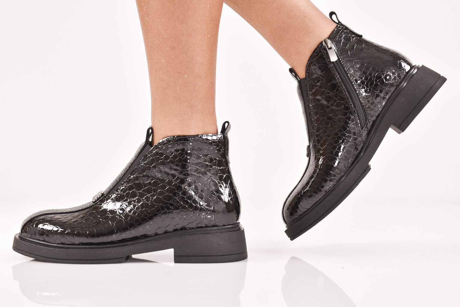Дамски боти естествен лак черни EOBUVKIBG #502-5254