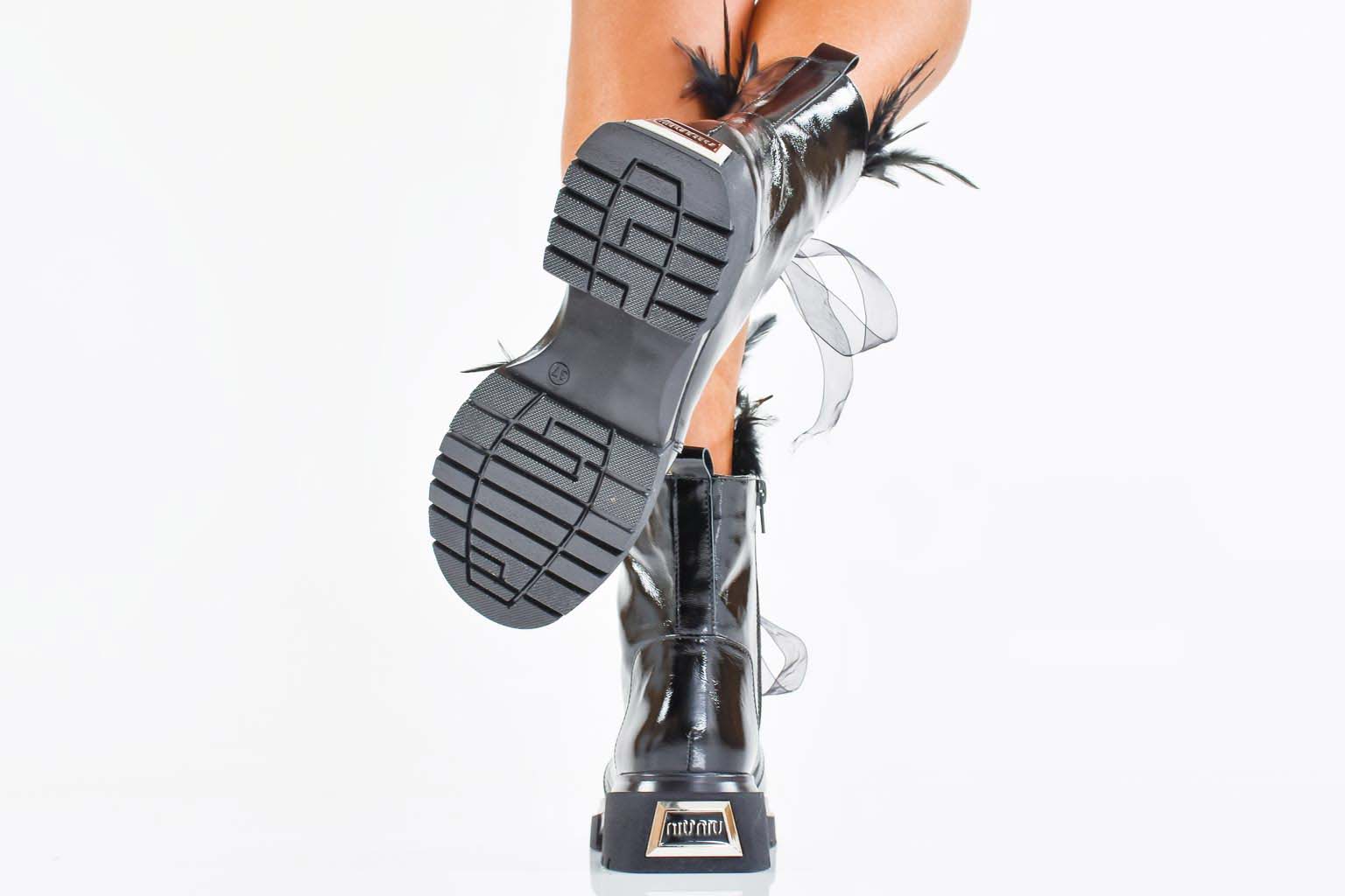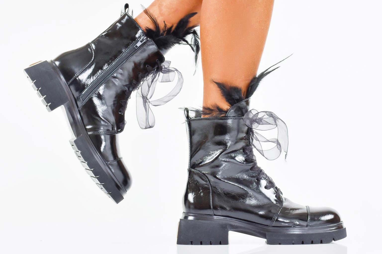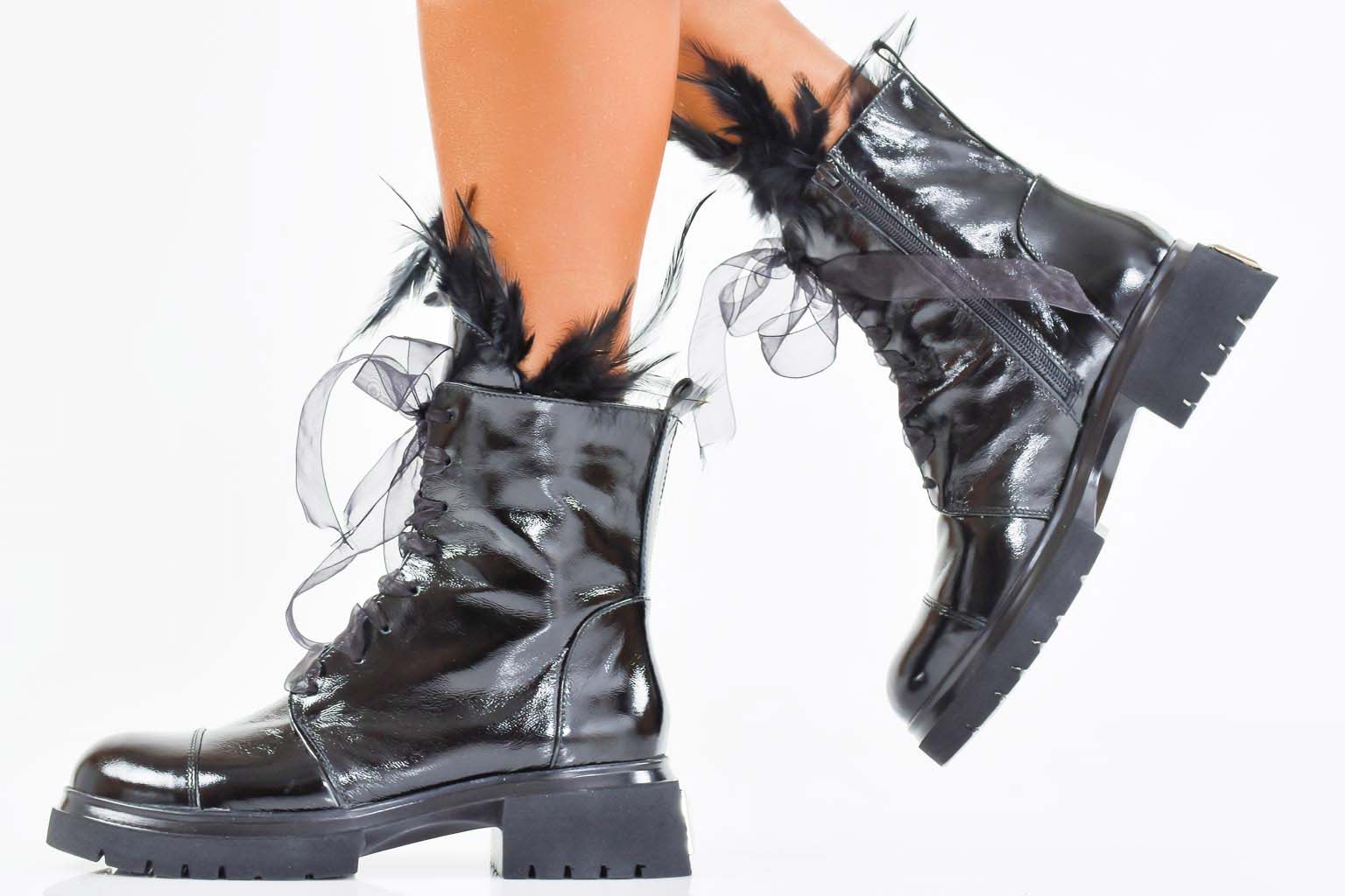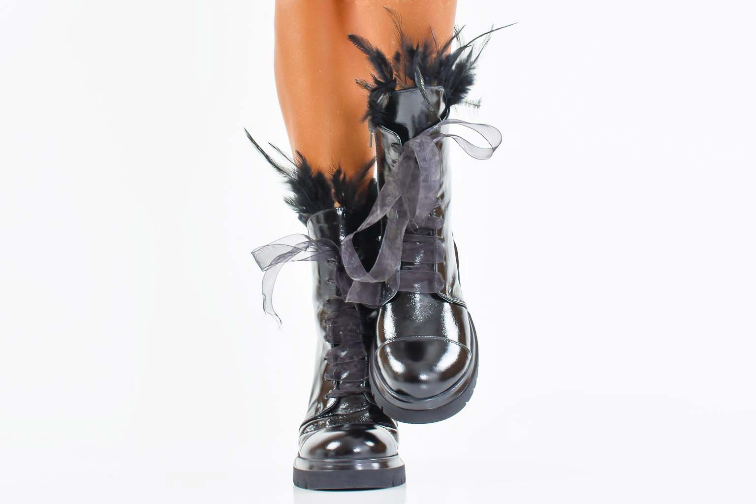 Дамски боти естествен лак черни EOBUVKIBG #502-7476