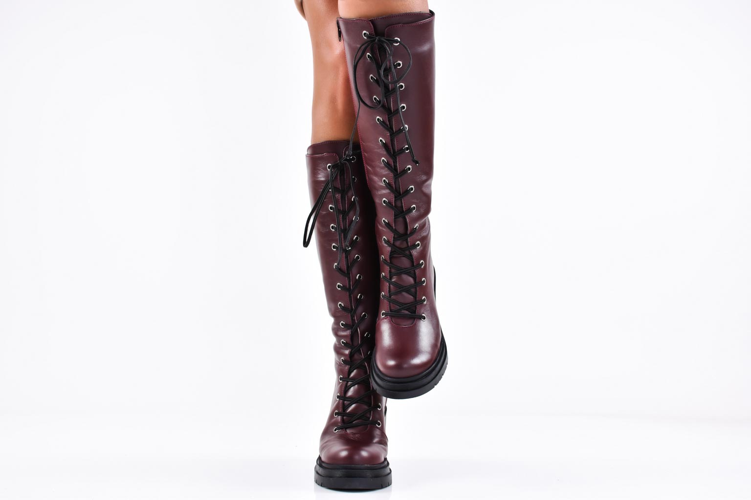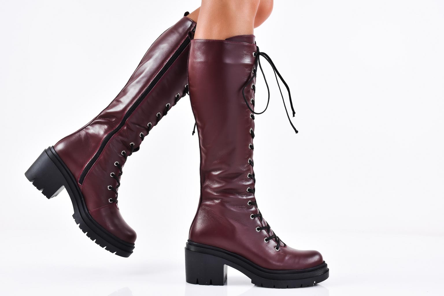 Дамски ботуши естествена кожа бордо EOBUVKIBG #502-5364