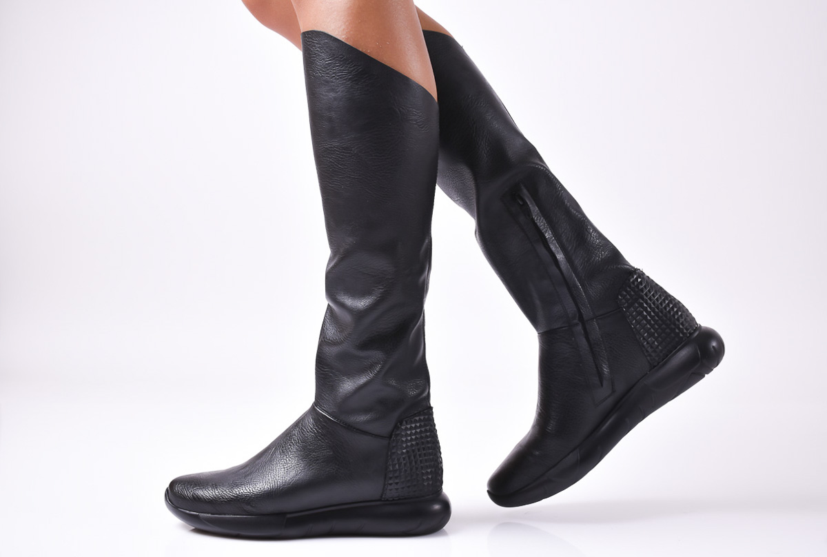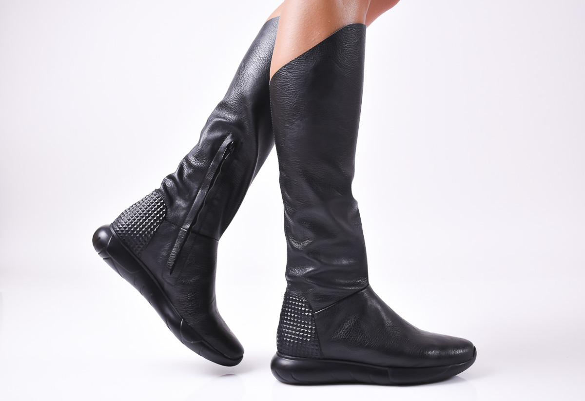 Дамски ботуши естествена кожа черни #158-4998