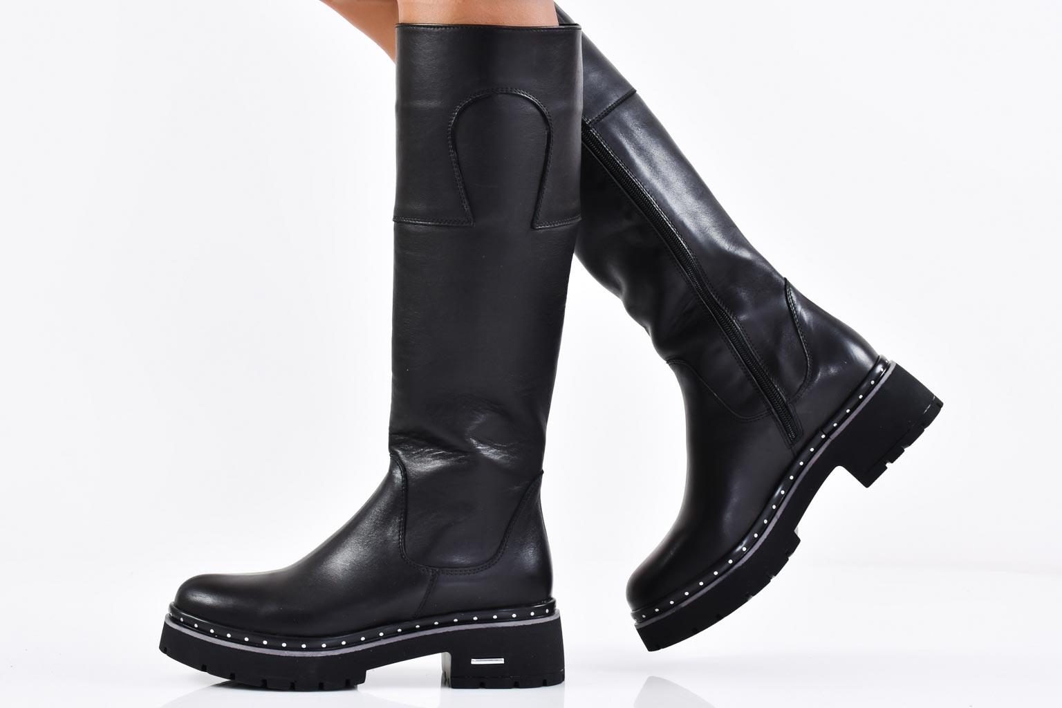 Дамски ботуши естествена кожа черни EOBUVKIBG #502-5365