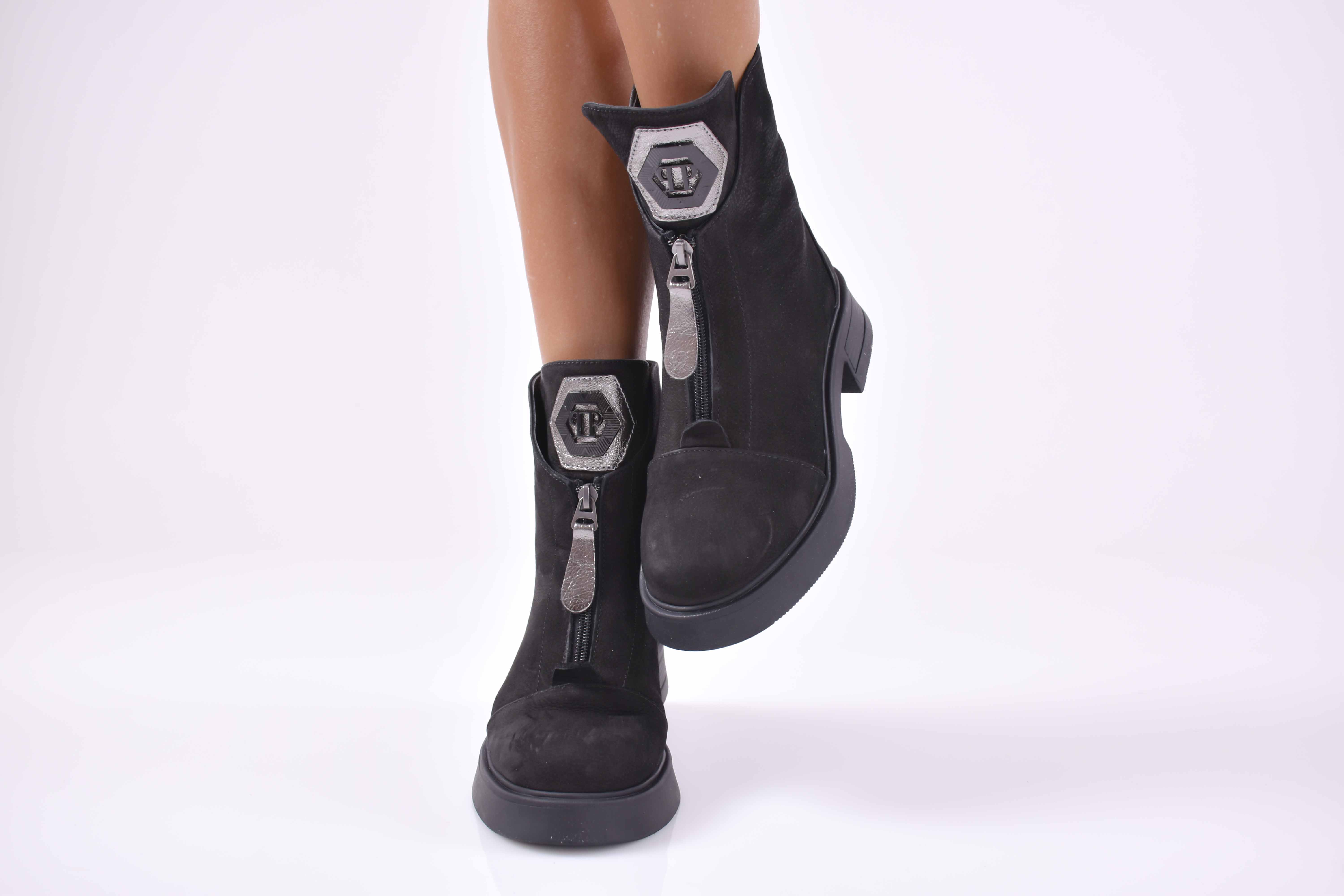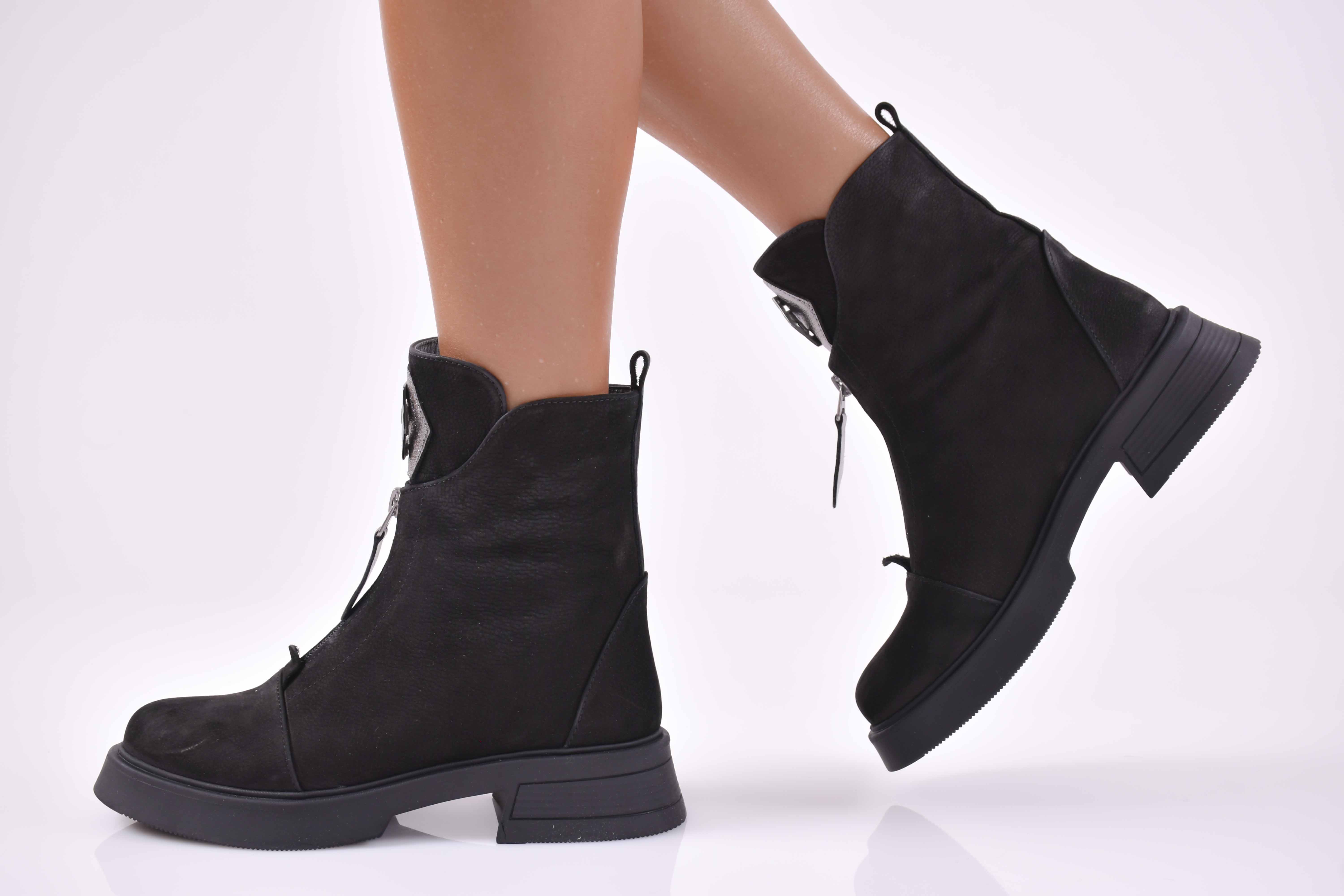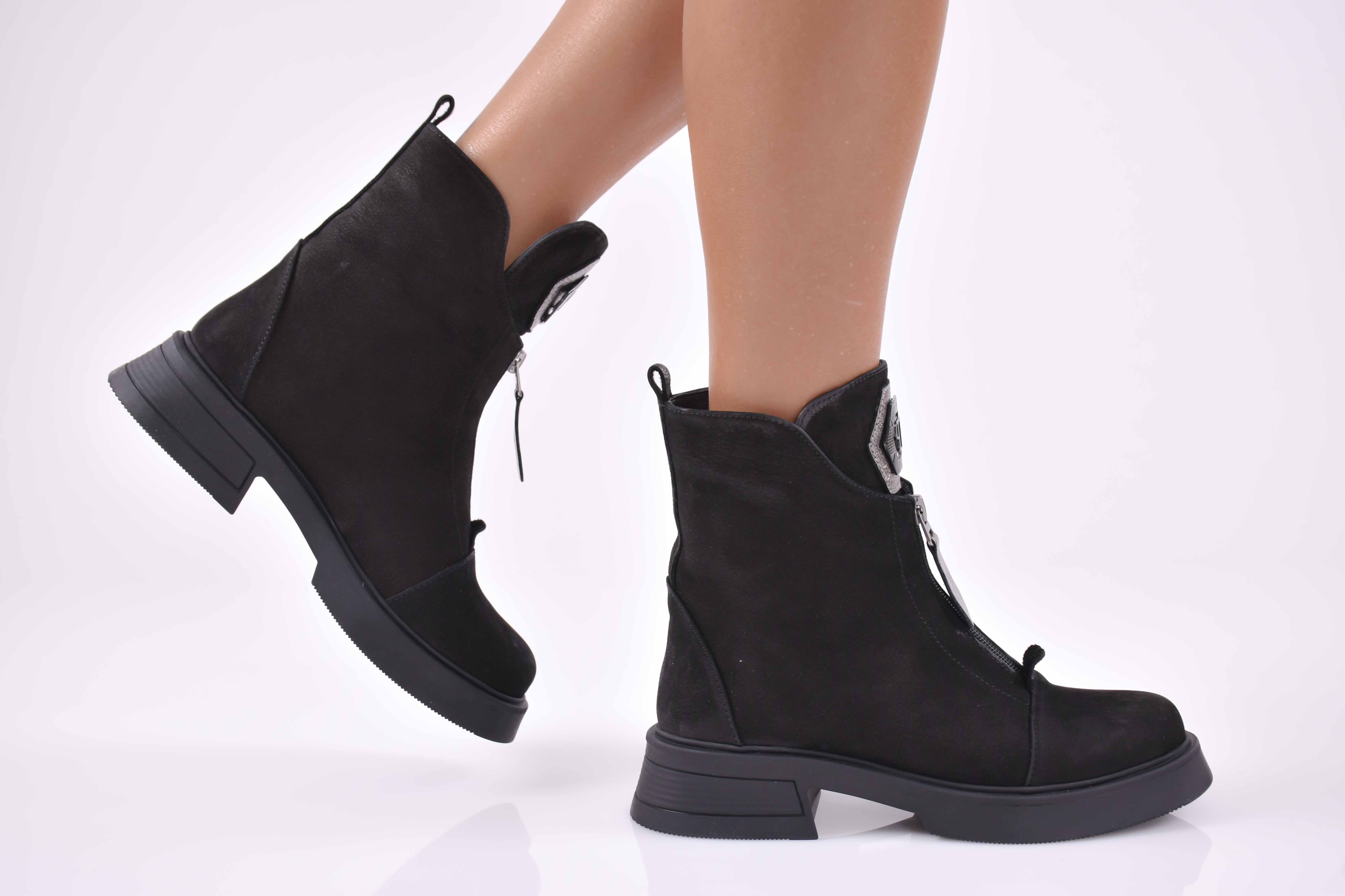 Представяме Ви, модерни дамски боти 501-4021, изработени от естествен набук в черен цвят. Подходящи за дами, които държат на модерната визия през целия ден. Моделът е с цип и връзка,за по-лесно обуване . Вътрешността е от фин топъл мек хастар, който допринася за допълнителният комфорт на крака.Характеристика;