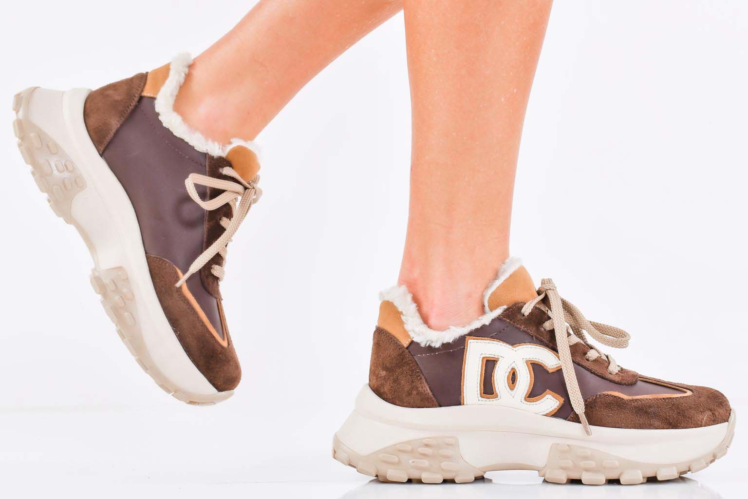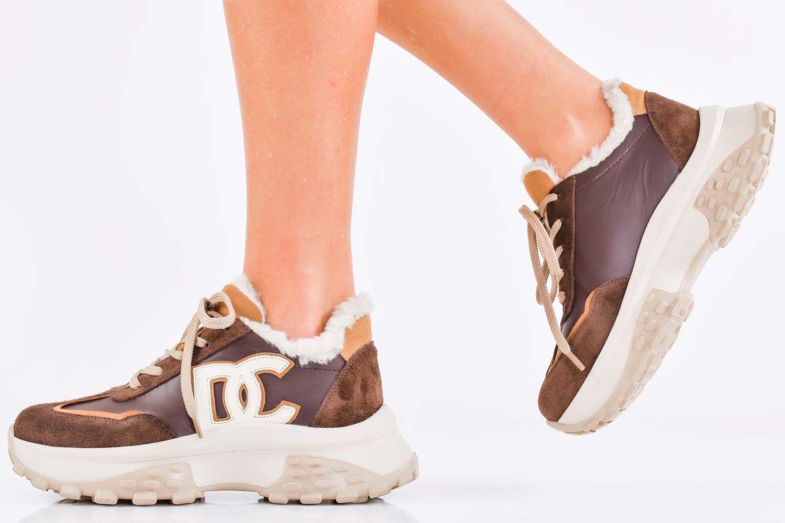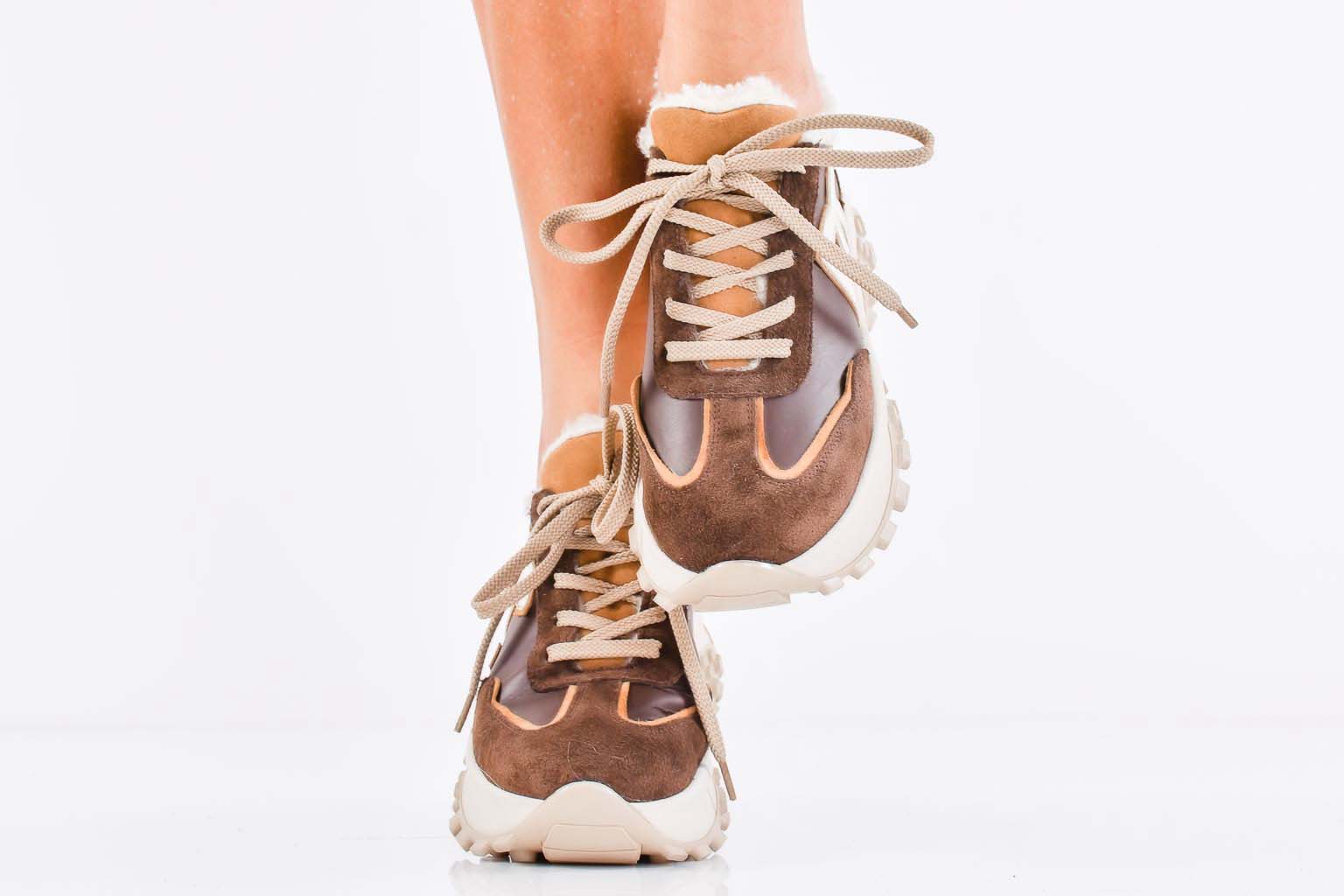 Дамски сникърси естествена кожа кафяви EOBUVKIBG #502-7435