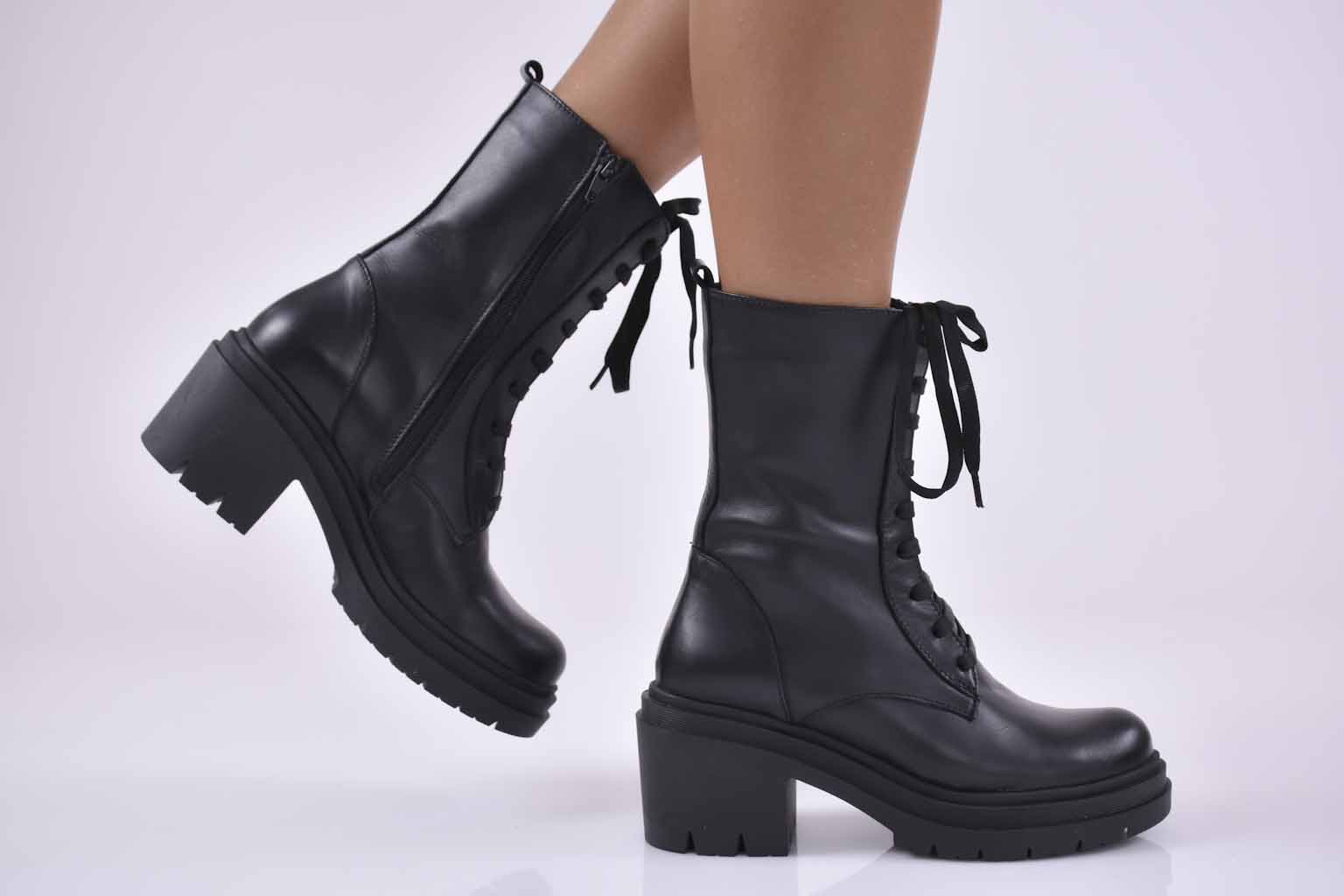Дамски боти естествена кожа черни EOBUVKIBG #501-9415