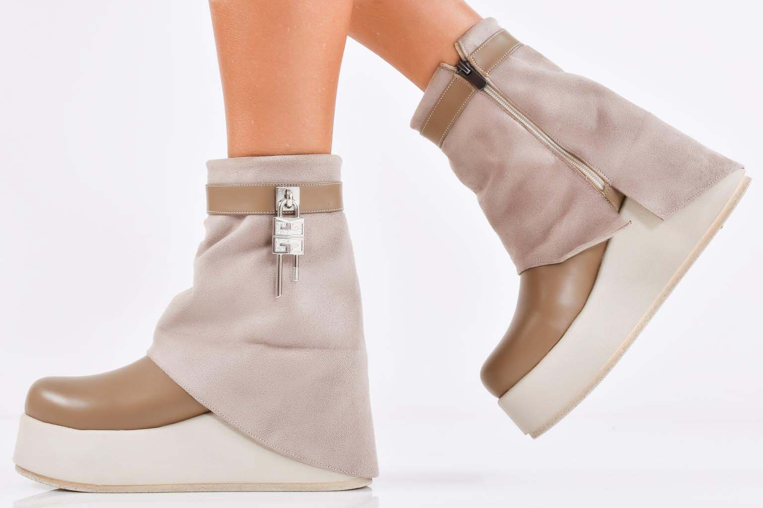 Дамски боти на платформа бежови EOBUVKIBG #502-7271