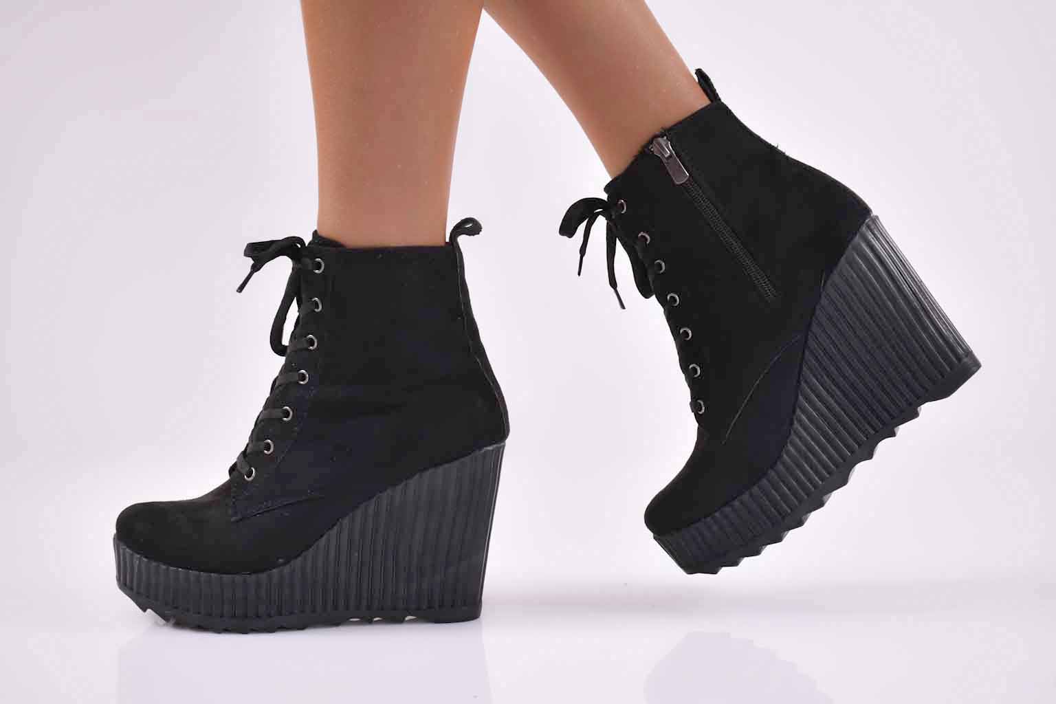 Дамски боти на платформа черни EOBUVKIBG #501-3945