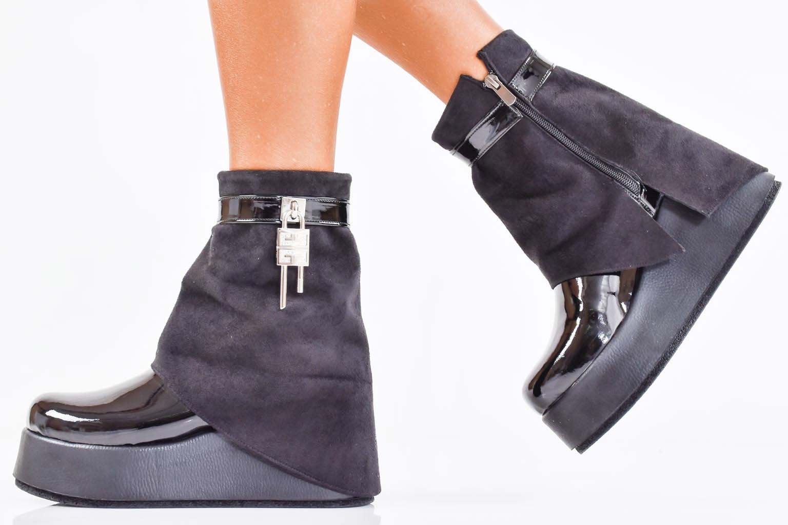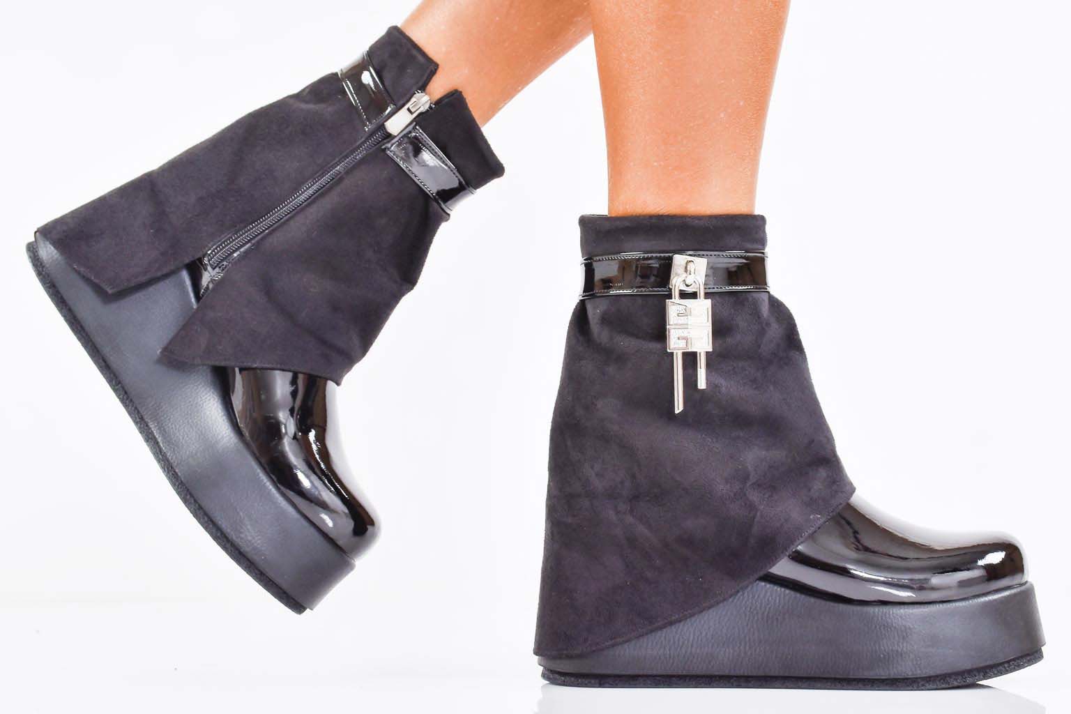 Дамски боти на платформа черни EOBUVKIBG #502-7267