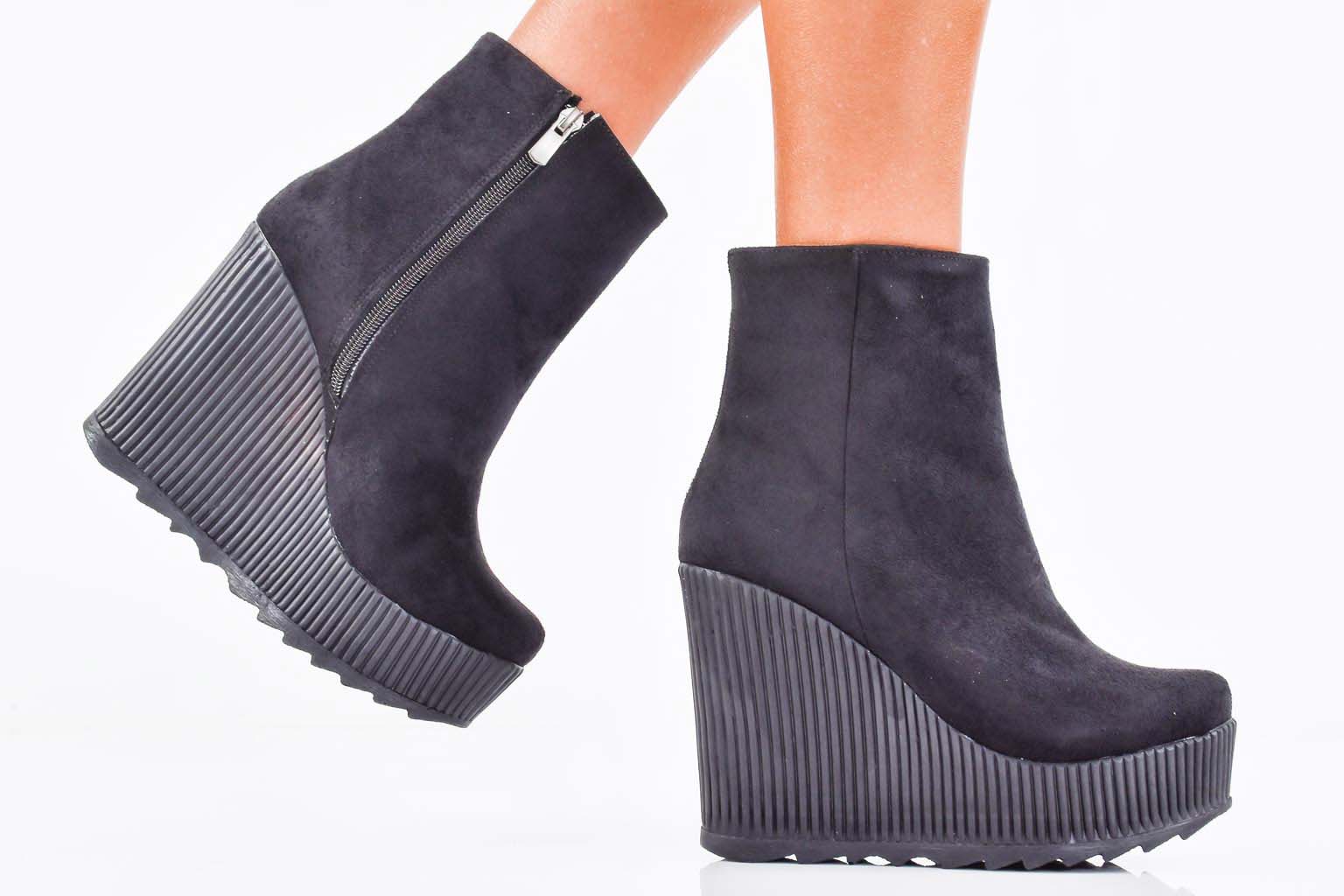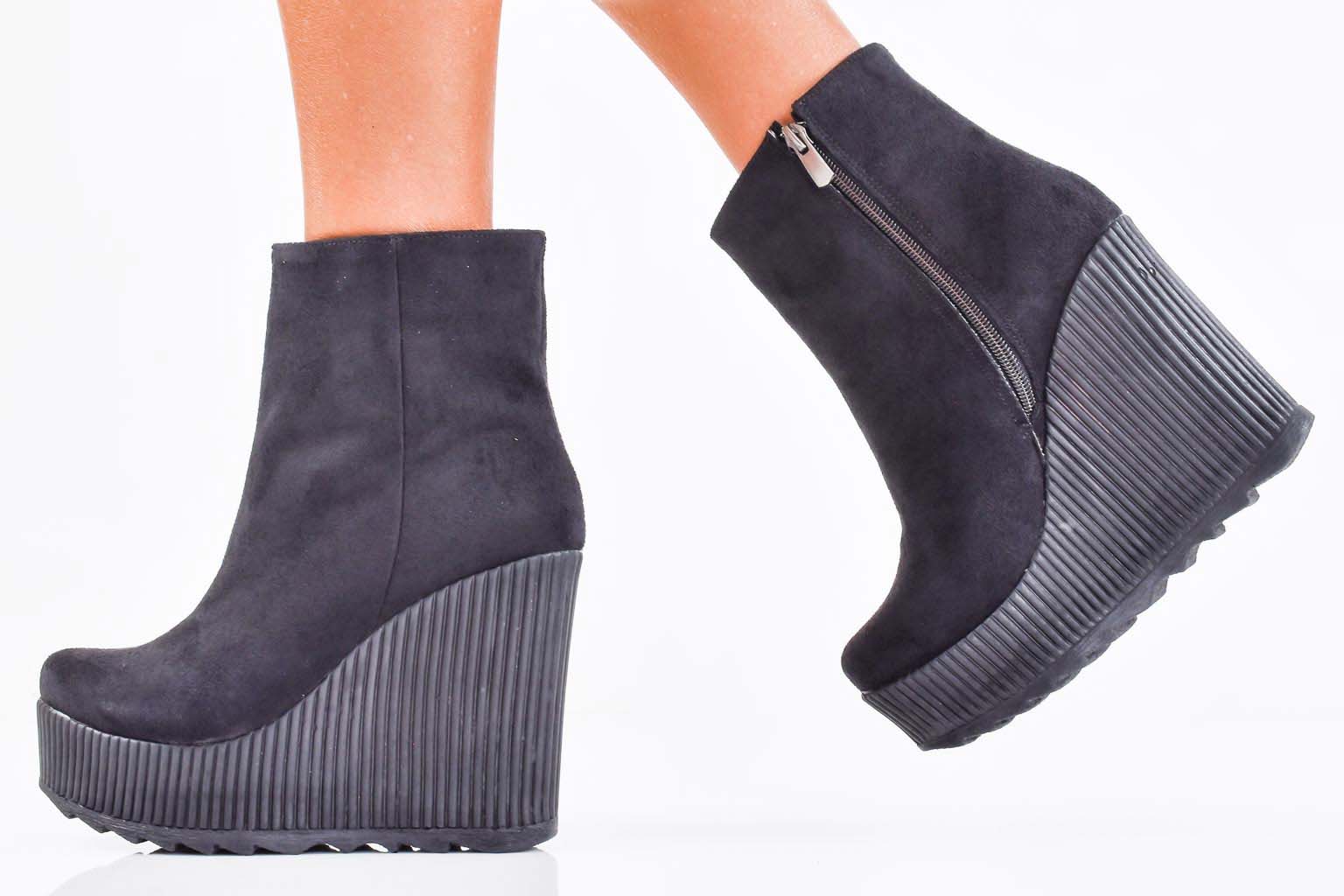 Дамски боти на платформа черни EOBUVKIBG #502-7277