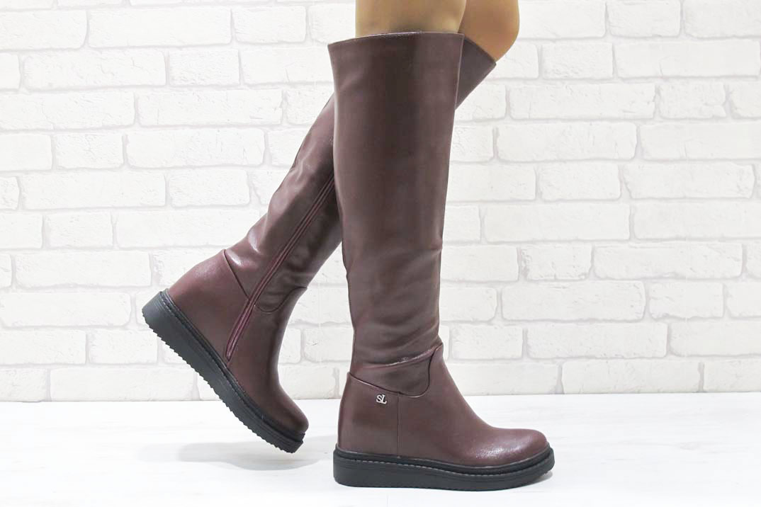 Дамски ботуши на платформа бордо #18-2020