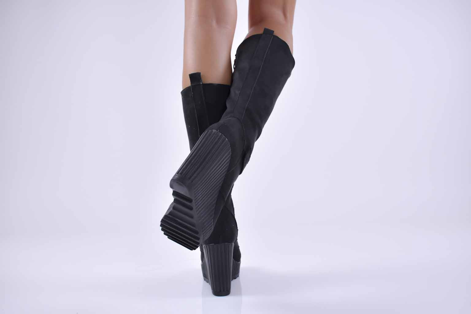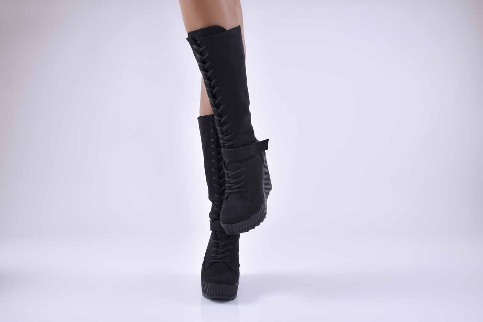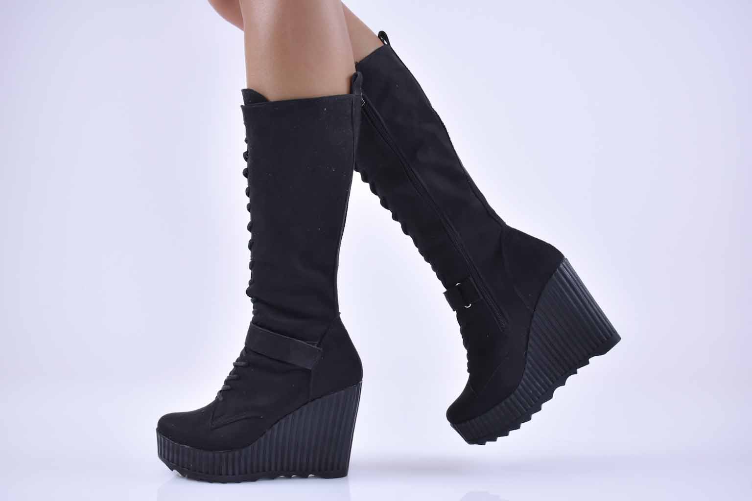 Дамски ботуши на платформа черни EOBUVKIBG #501-4127