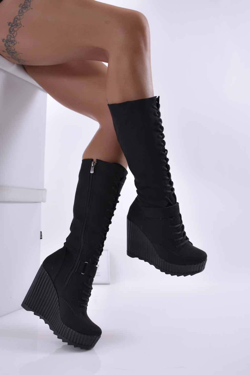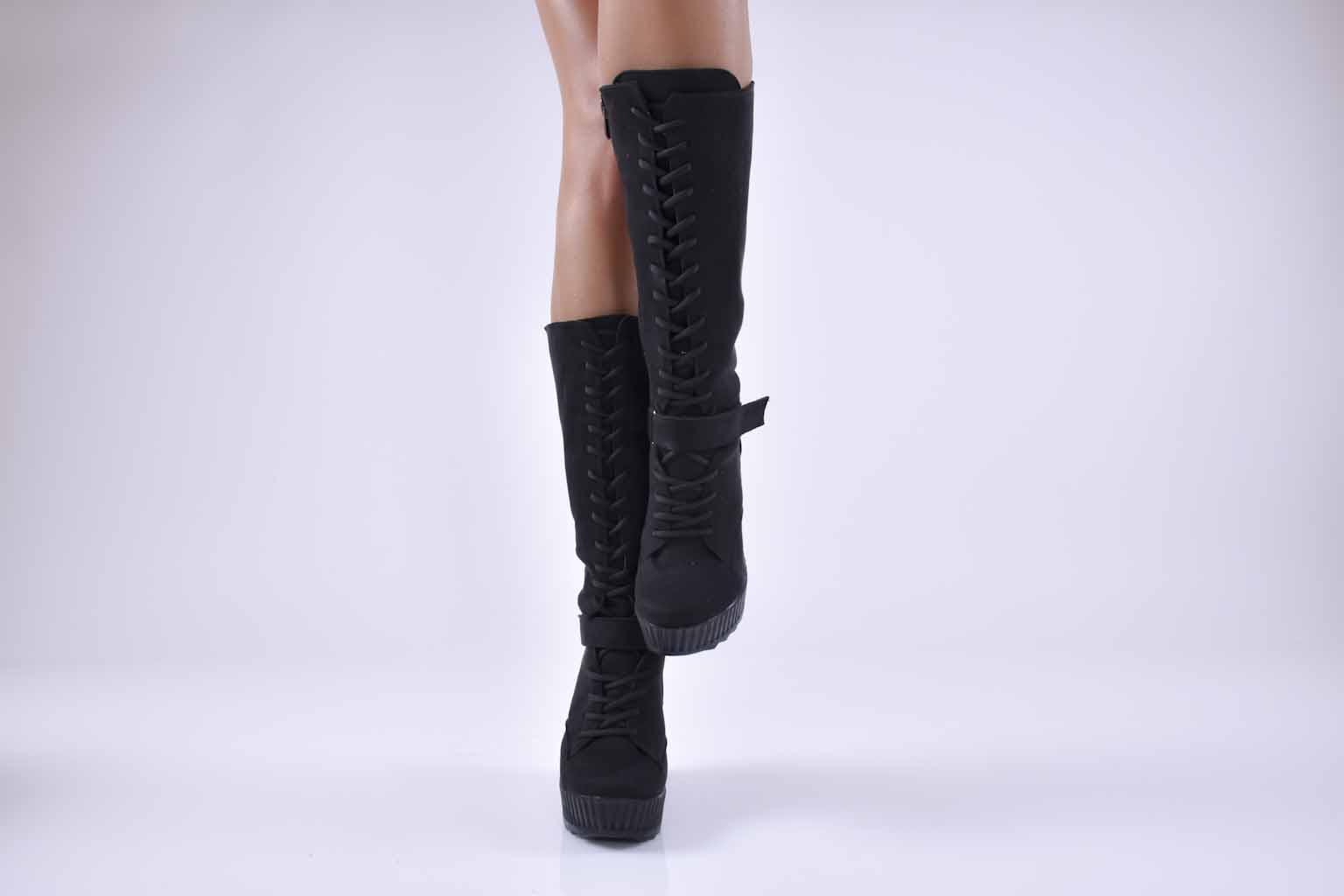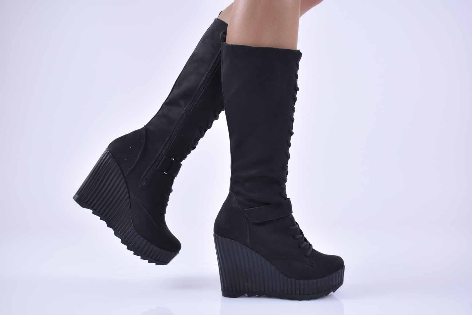 Дамски ботуши на платформа черни EOBUVKIBG #501-4127
