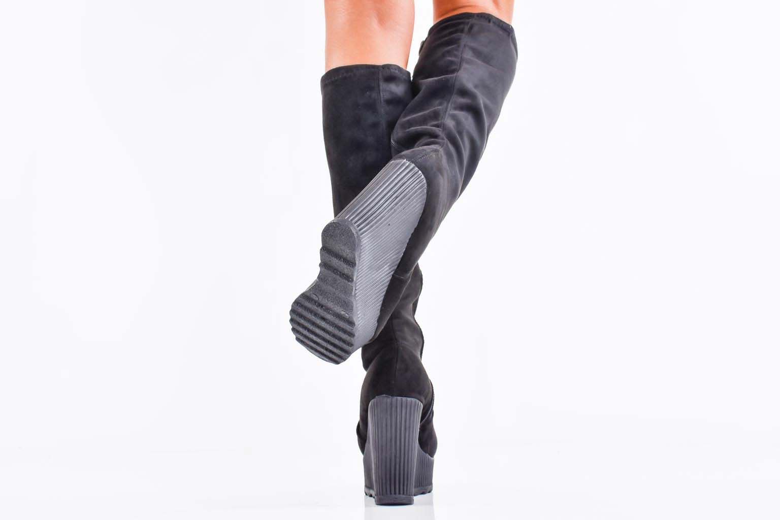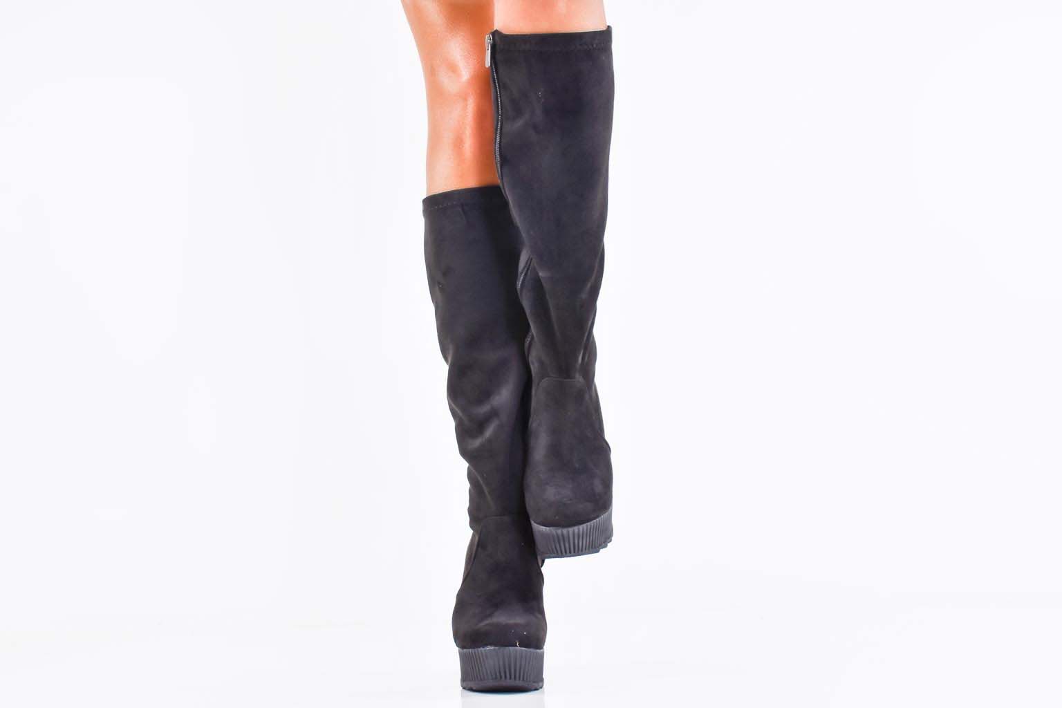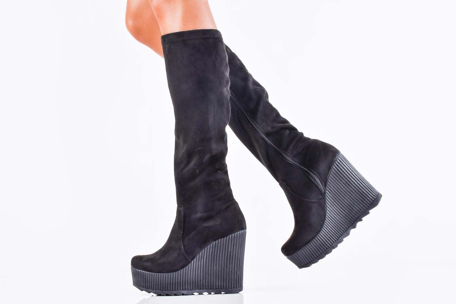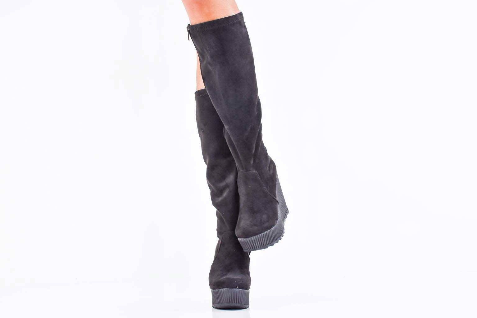 Дамски ботуши на платформа черни EOBUVKIBG #502-7272