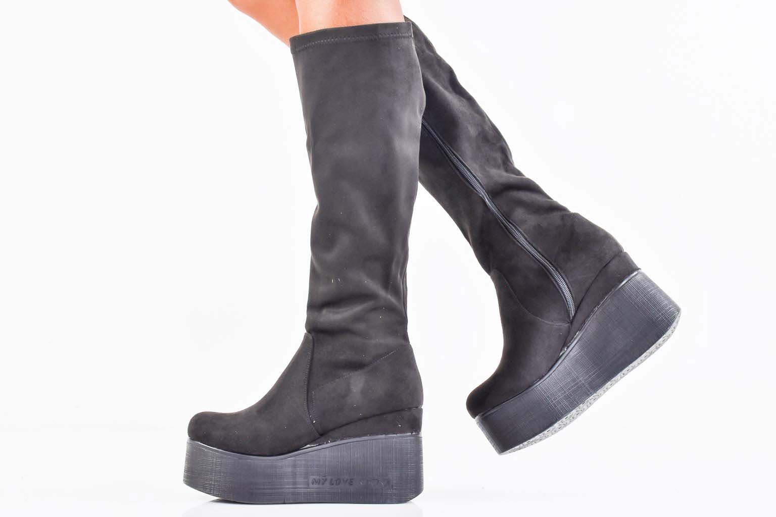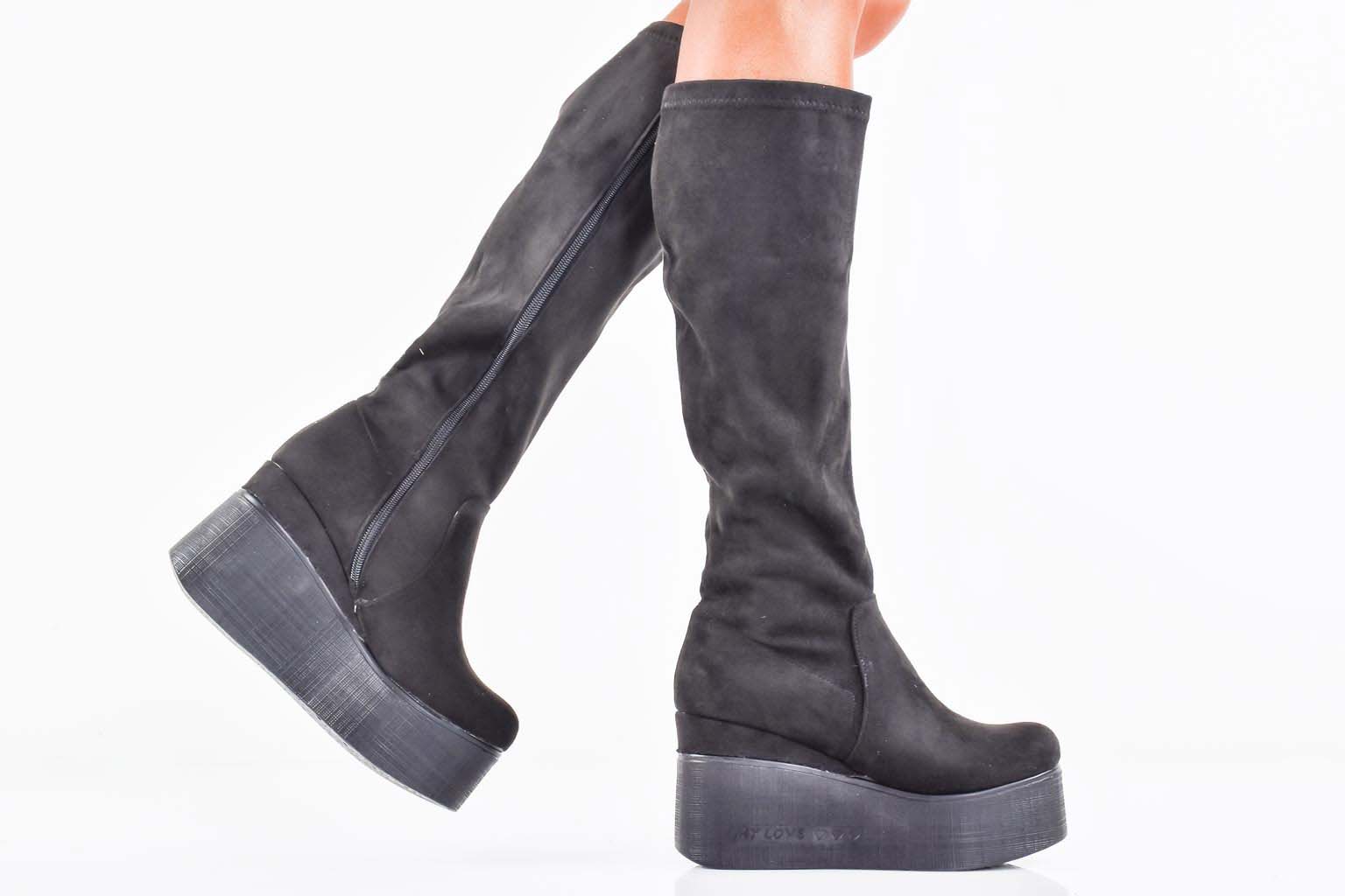 Дамски ботуши на платформа черни EOBUVKIBG #502-7348
