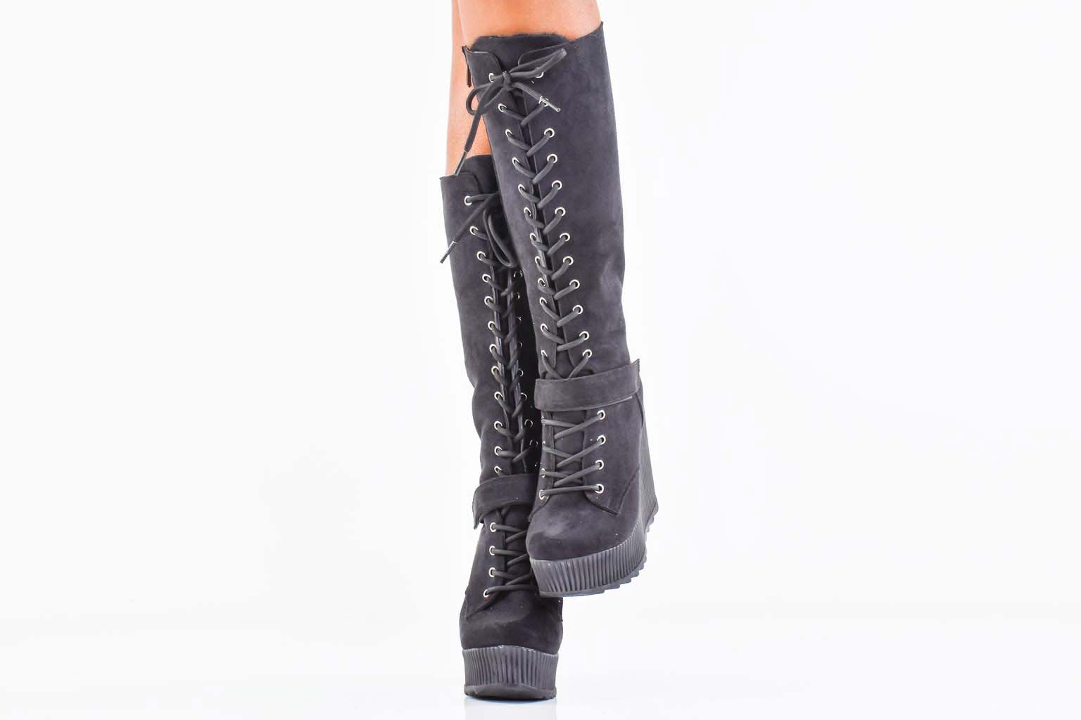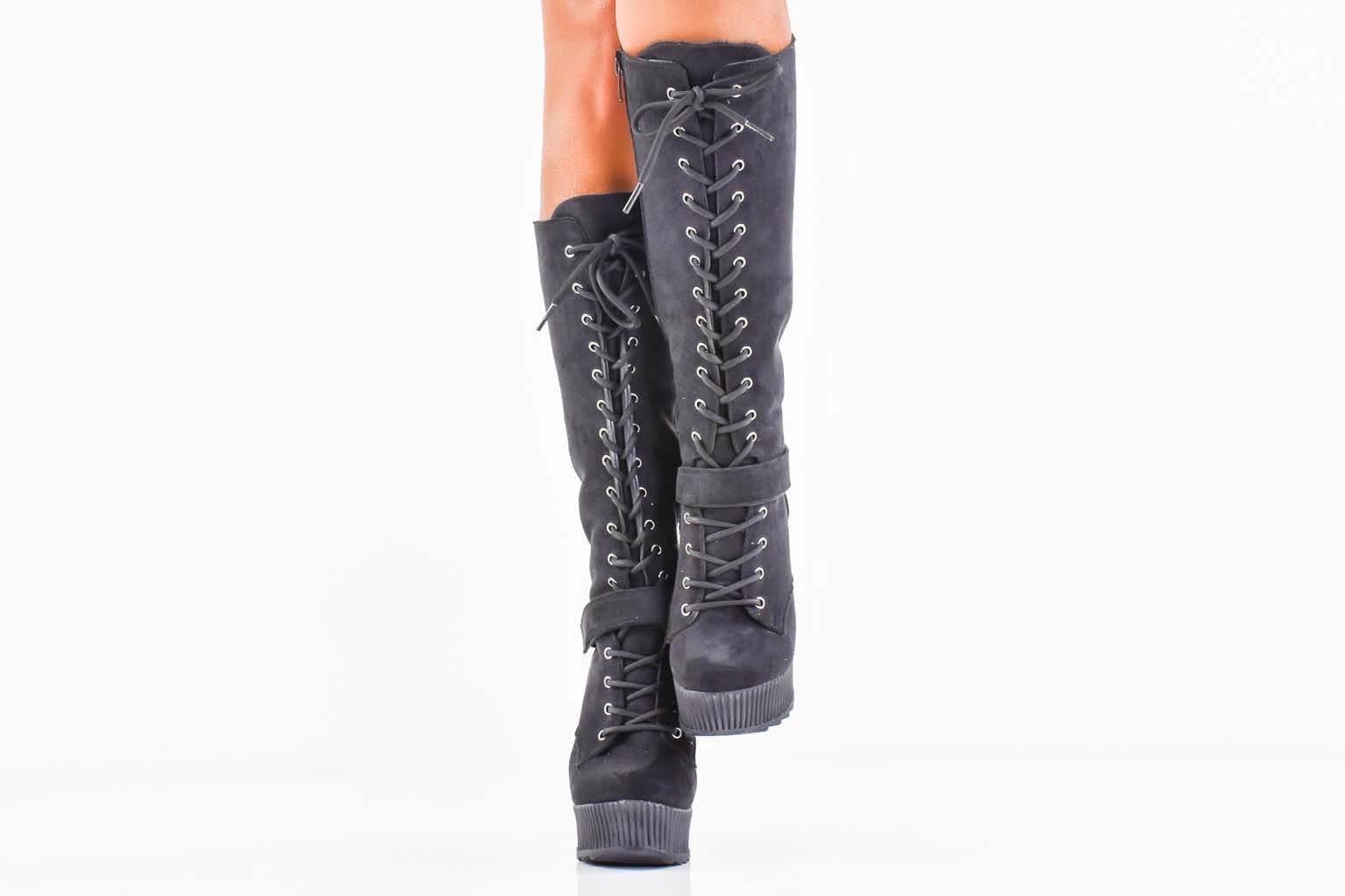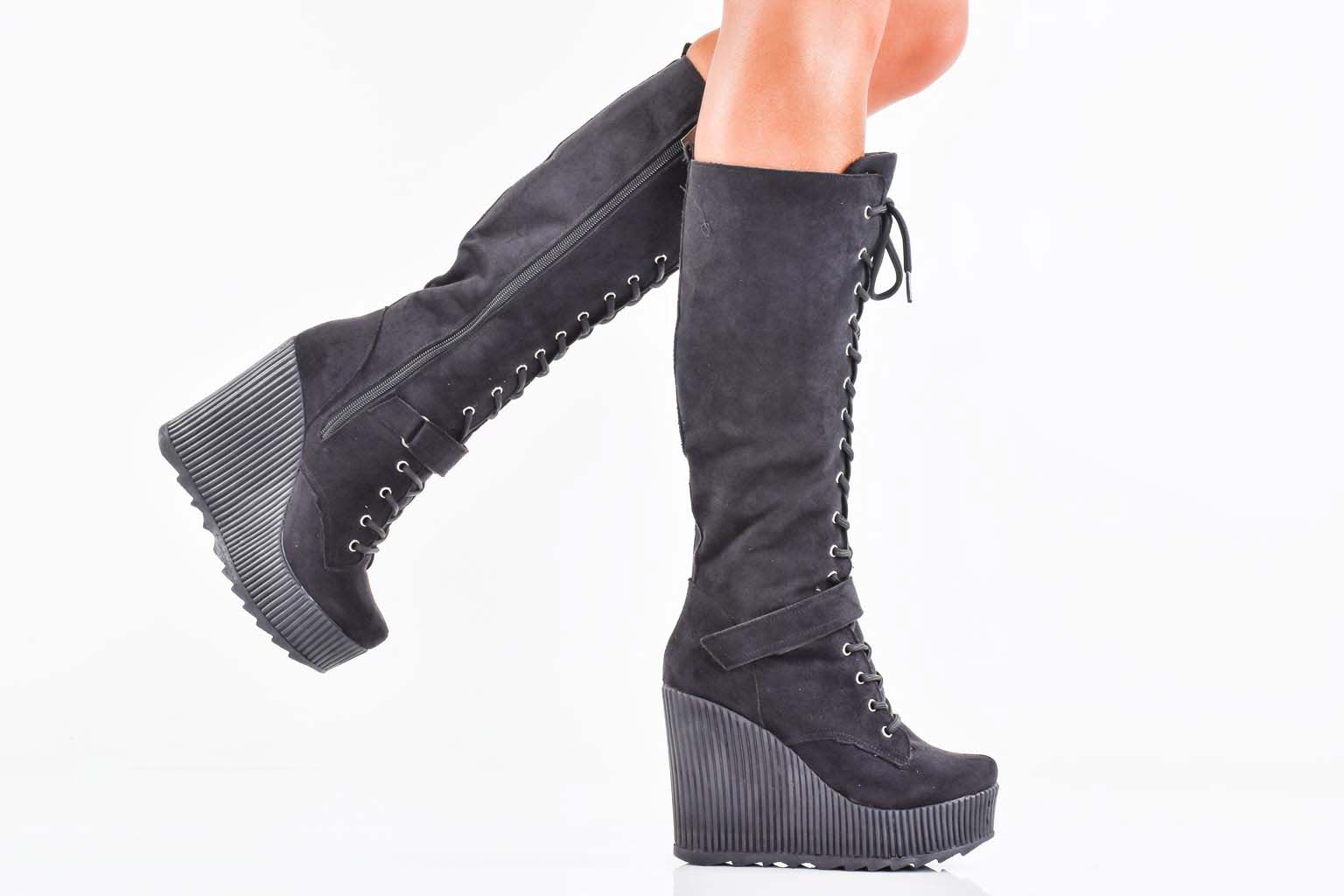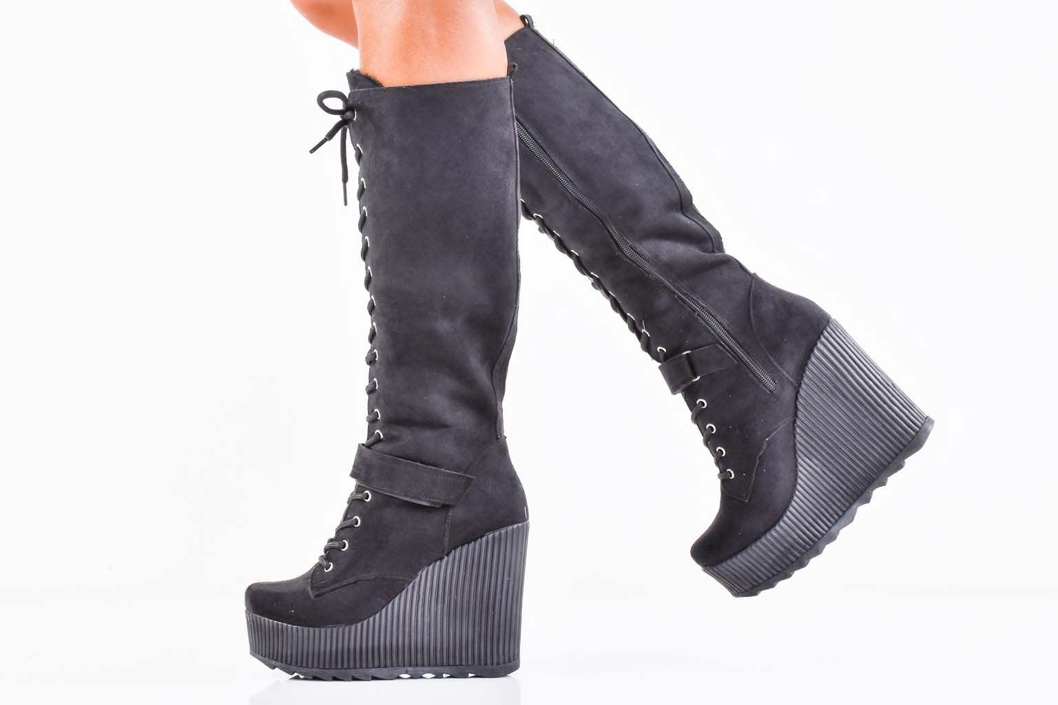 Дамски ботуши на платформа черни EOBUVKIBG #502-7351