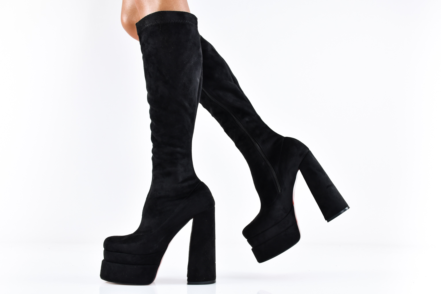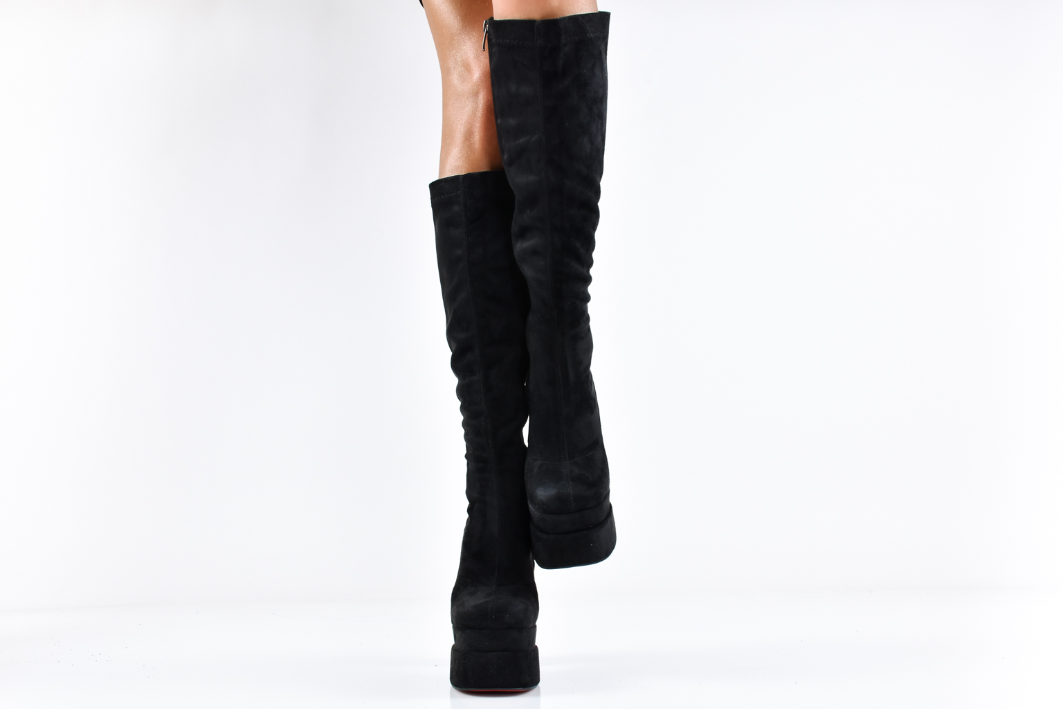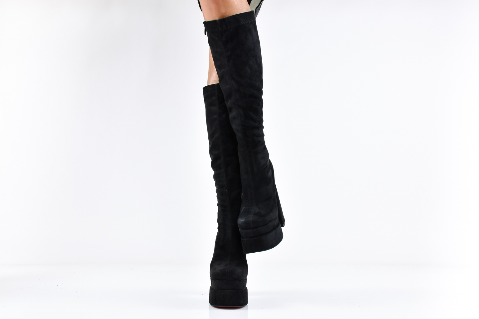 Имаме удоволствието да Ви представим нов модел дамски ботуши елегантни, EOBUVKIBG 502-5313 в черен цвят. Вътрешността е изцяло от фин мек топъл хастар, стелката е мека и комфортна.Ботушите са с удобна платформа чиято извивка плавно следва стъпалото, гарантирайки опора и мекота.Характеристика; Височина на платформата в предната част; 5 см. Височина на тока ; 14 см. Височина на ботуша от петата до горе; 40 см. Цвят;Черно. Номерация;36-40: Моделът е стандартен и отговаря на размерите.Тегло на модела 37 размер 476 грама.