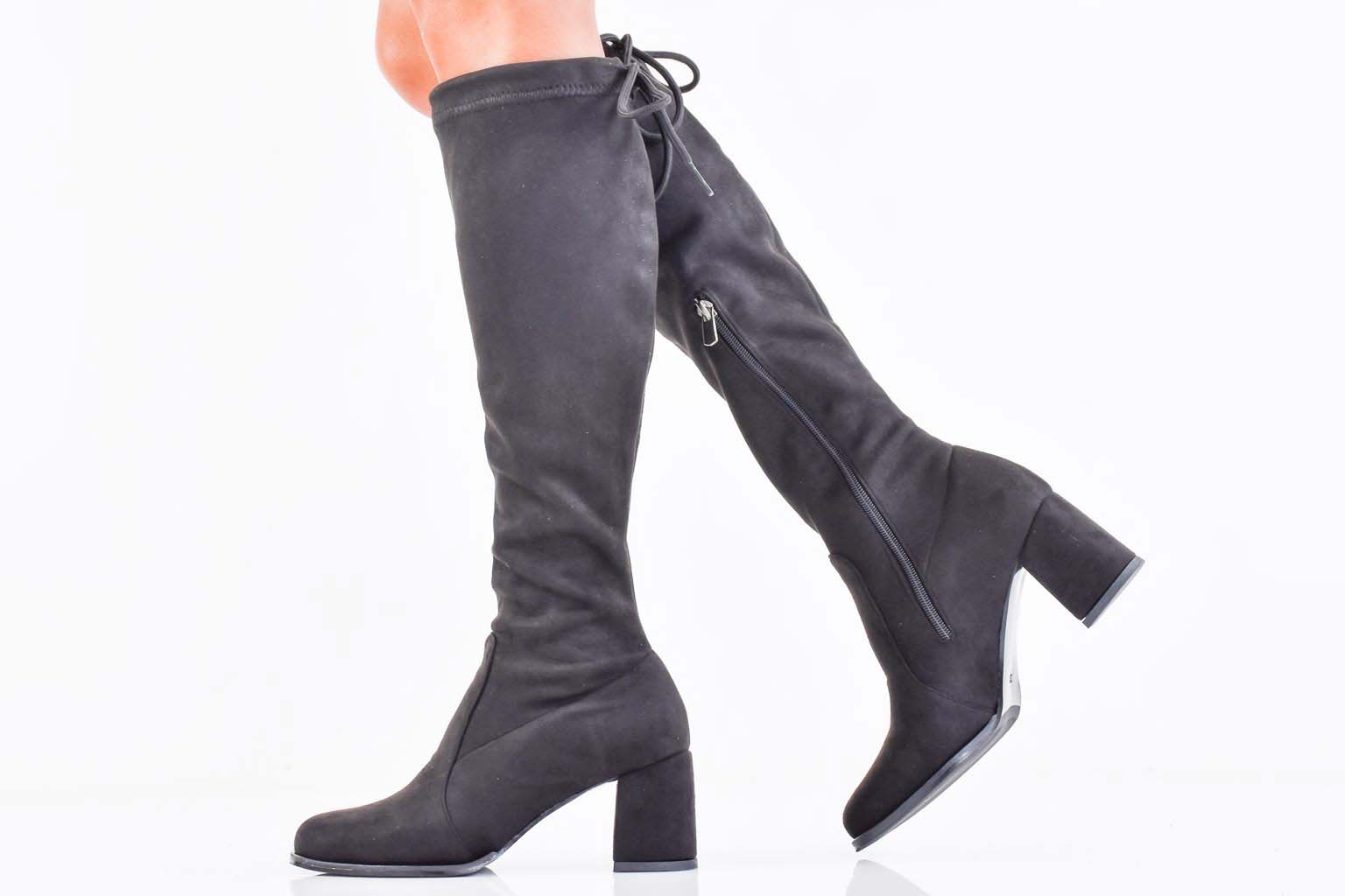 Дамски елегантни ботуши черни EOBUVKIBG #502-7380