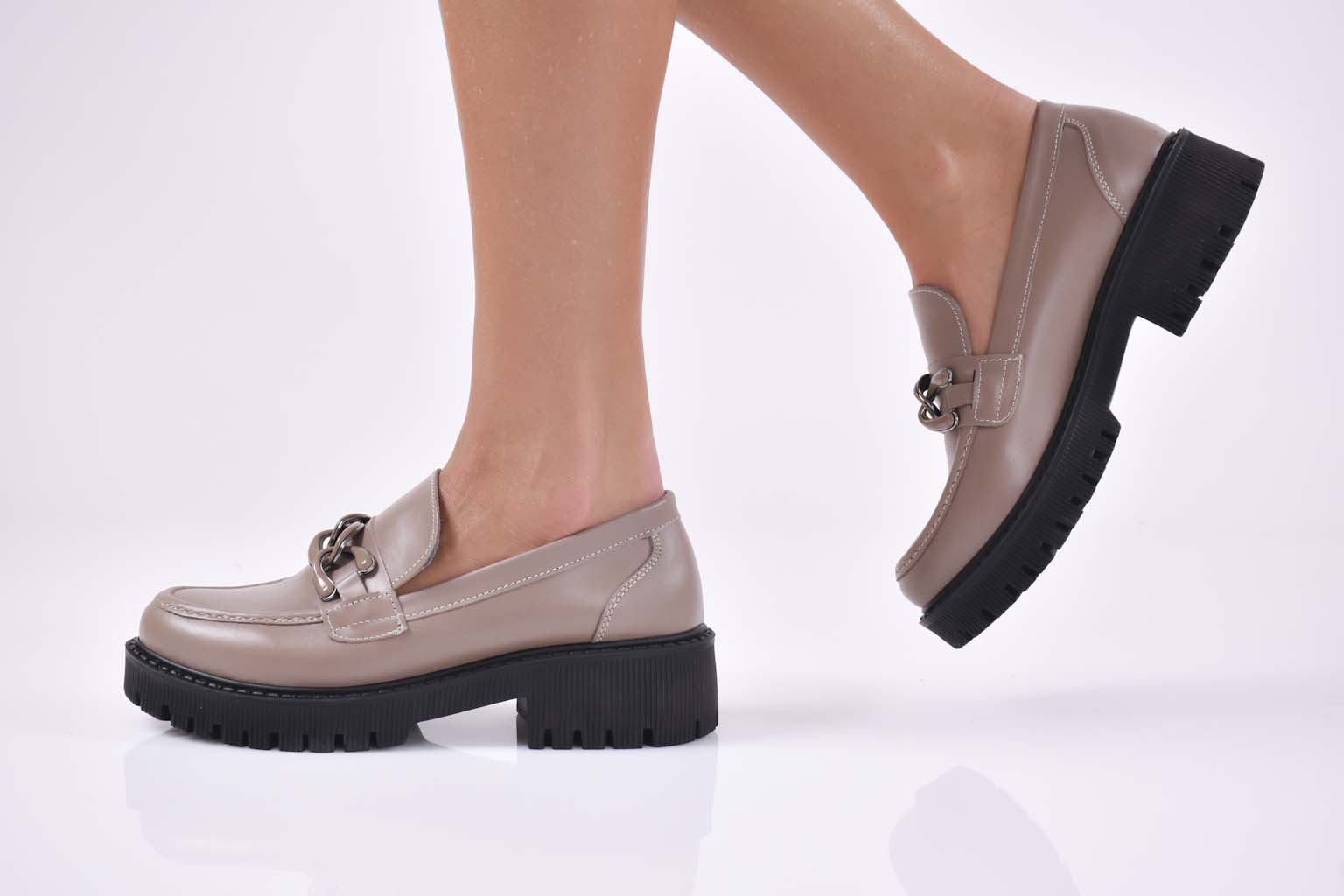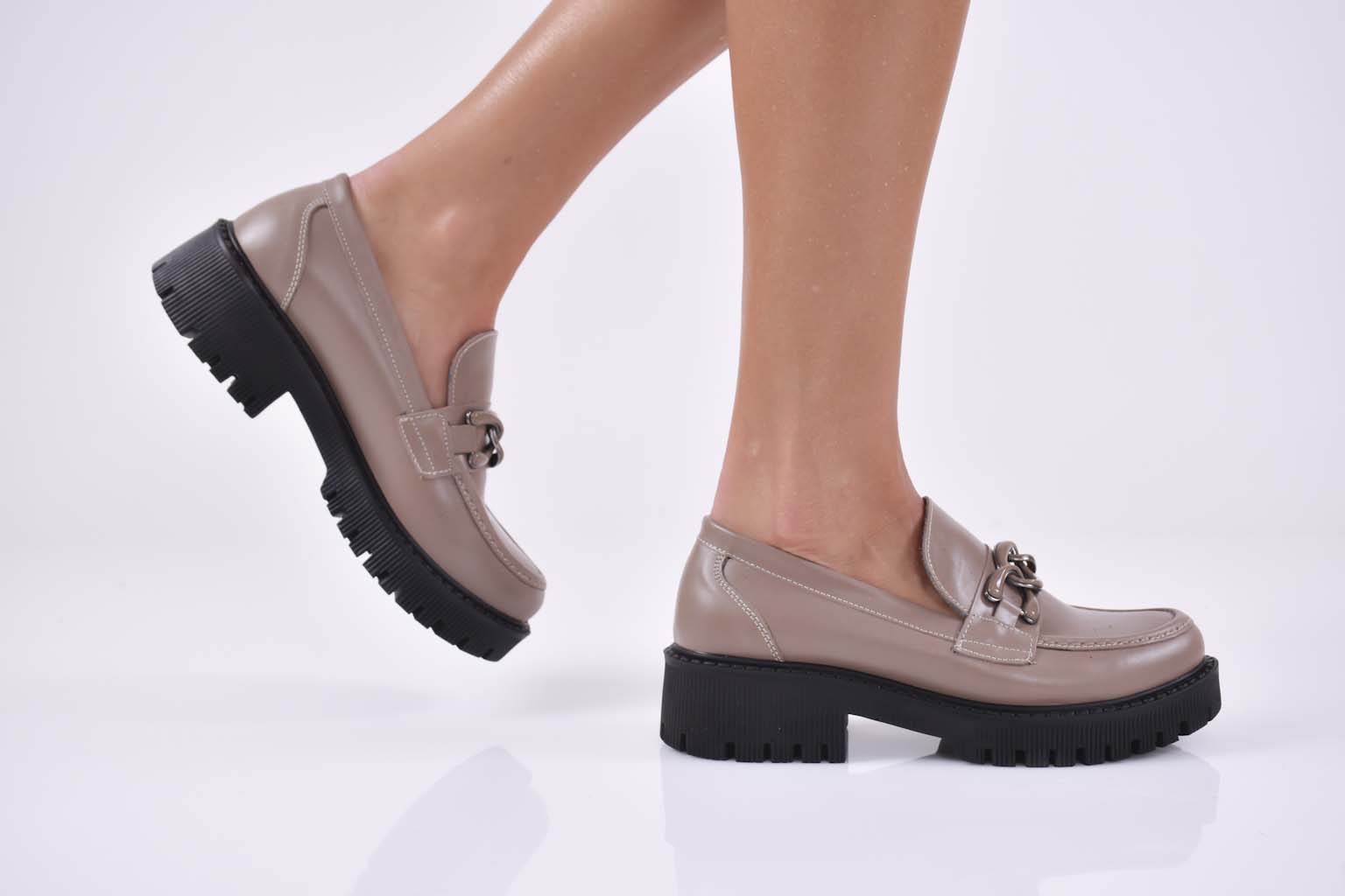 Имаме удоволствието да Ви представим нов модел дамски лоуфъри EOBUVKIBG 502-3195 изработени от естественна кожа в бежов цвят. Ортопедичната стелка е гарант за мекота и оптимална опора за свода на стъпалото, поддържайки го в правилната позиция при продължително ходене. Характеристика: Височина на ходилото отпред: 2 см. Височина на ходилото в задната част: 4 см. Материал: Естественна кожа. Цвят: Бежово. Номерация:36-41.Тегло на модела 37 размер : 239 грама. Моделът е уголемен.