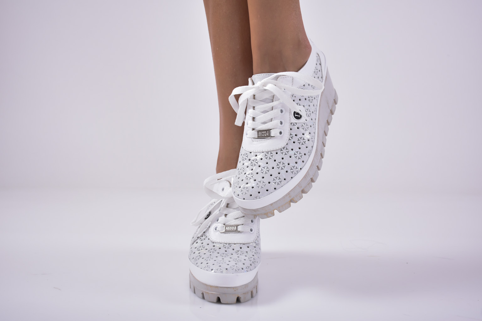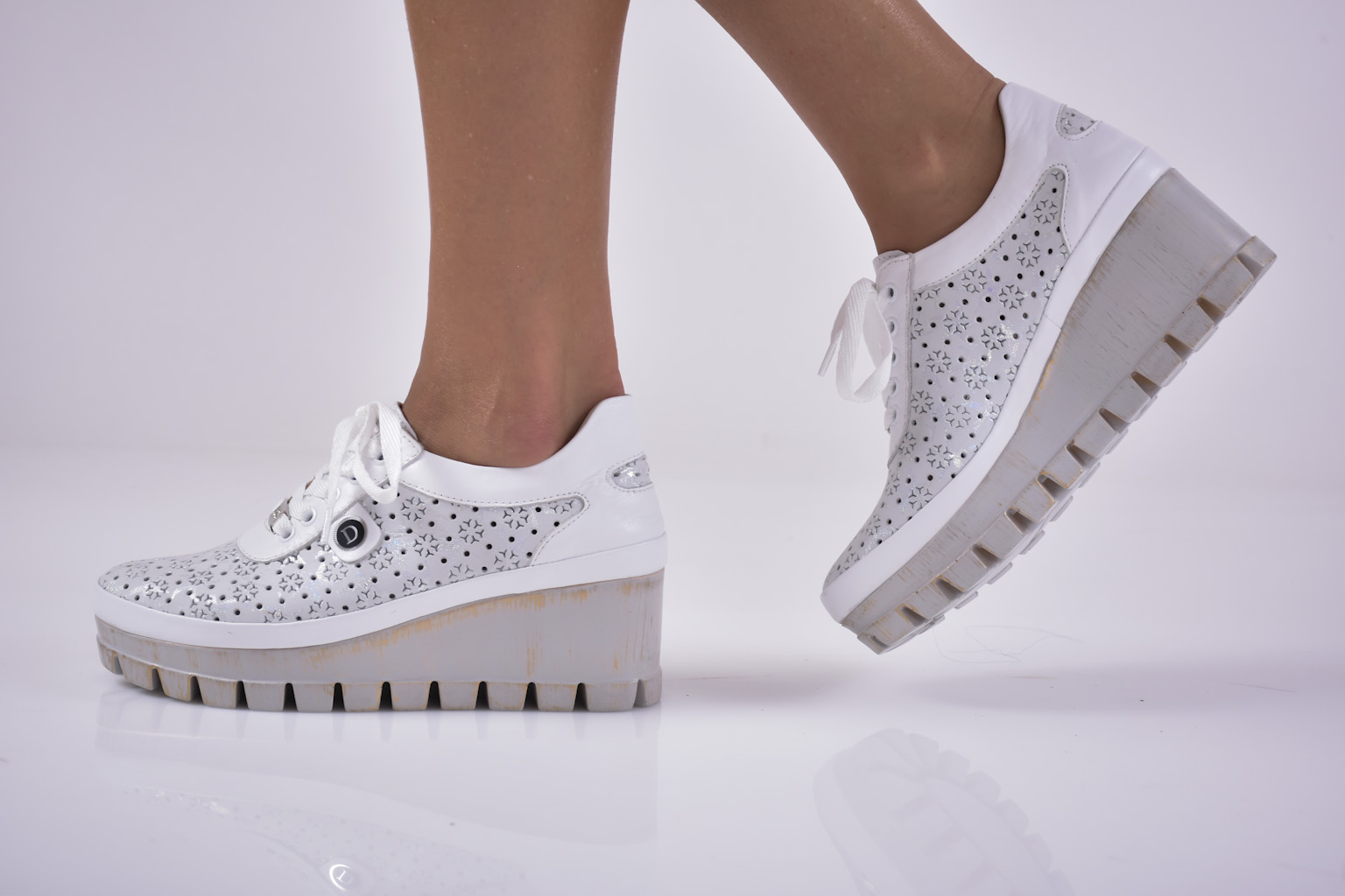 Имаме удоволствието да Ви представим нов модел дамски обувки на платформа EOBUVKIBG 502-4319 изработени изцяло от естествена кожа. Стелката е мека анатомична и комфортна,изработена изцяло от естествена кожа.Модела е с връзки който улесняват обуването. Вътрешна част – естествена кожа. Ортопедичната “дишаща” стелка е гарант за мекота и оптимална опора за свода на стъпалото, поддържайки го в правилната позиция при продължително ходене. Височина на платформата отпред: 2,5 см. Височина на платформата в задната част 5,5 см. Цвят: Бял. Номерация: 36-40 Тегло на модела 36 размер 312 грама.Моделът е стандартен и отговаря на размерите.
