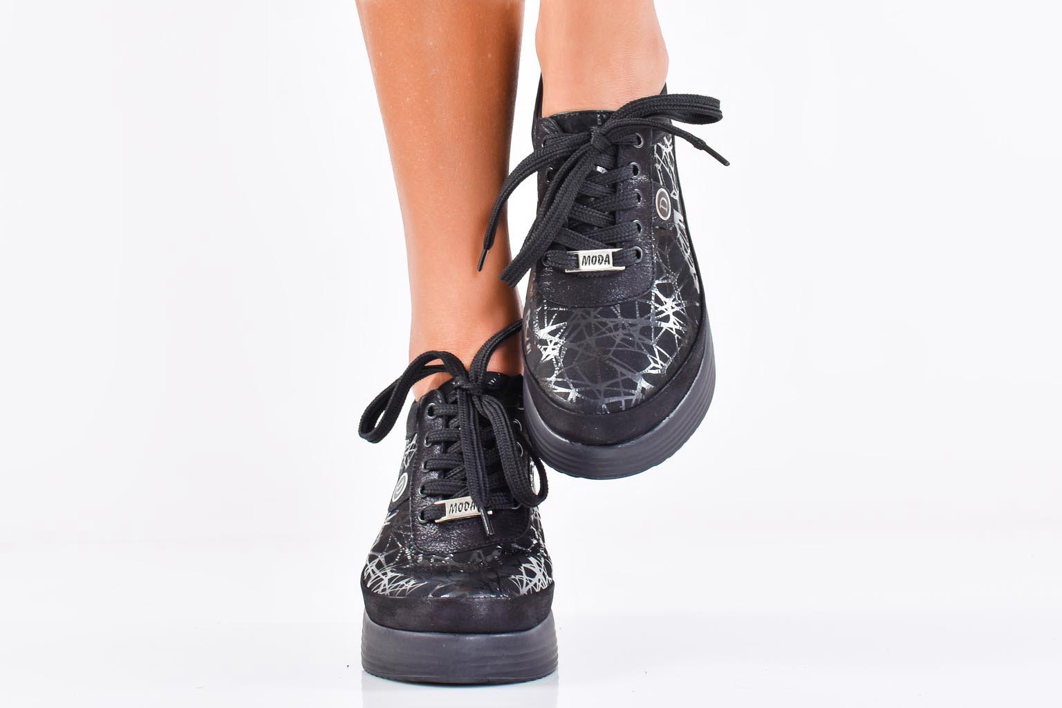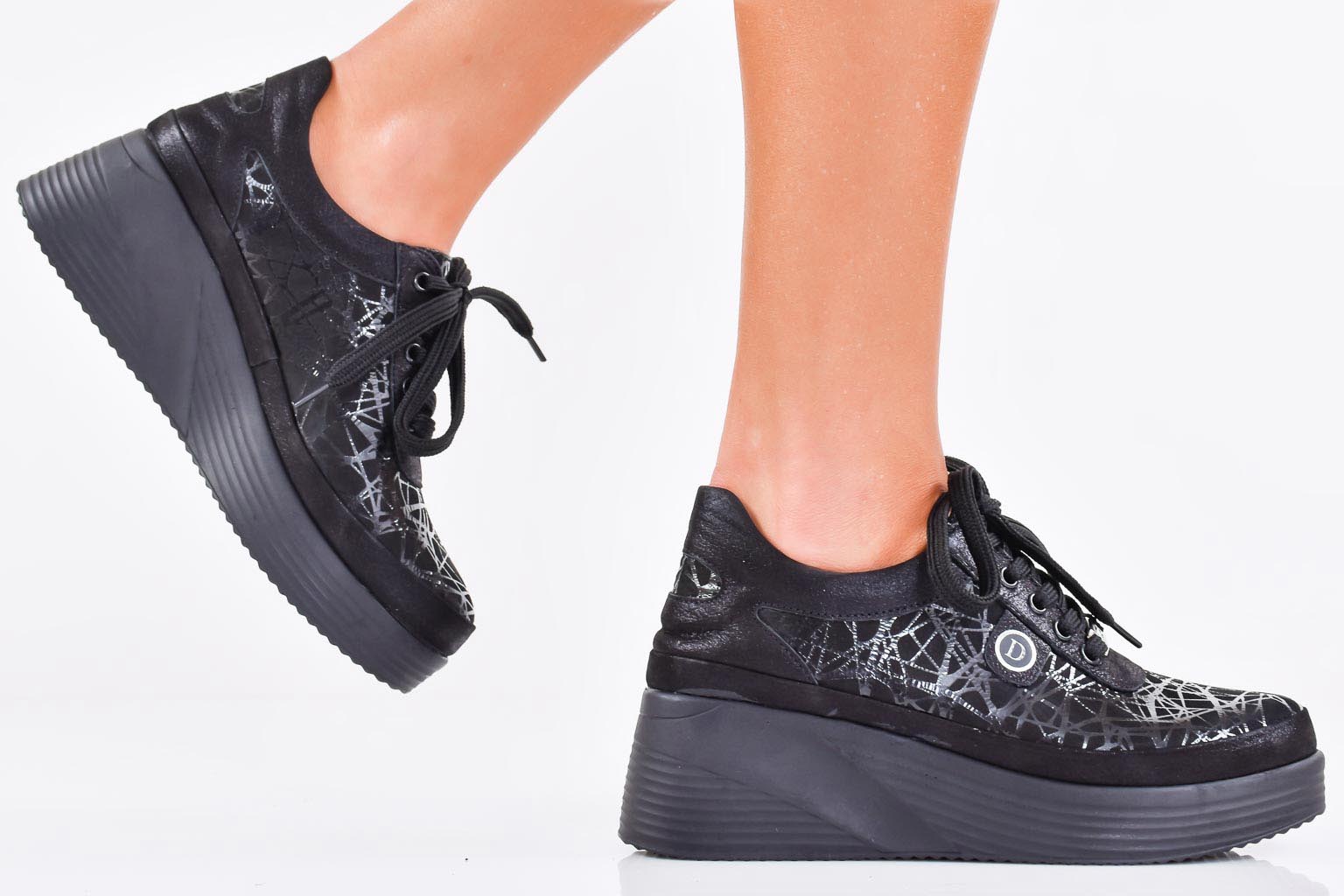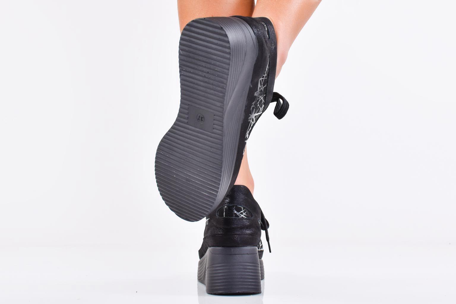 Имаме удоволствието да Ви представим нов модел дамски обувки на платформа EOBUVKIBG 502-6938 в черен цвят изработени изцяло от естествена кожа. Стелката е мека анатомична и комфортна,изработена изцяло от сатен. Модела е с връзки които улесняват обуването. Ортопедичната “дишаща” стелка е гарант за мекота и оптимална опора за свода на стъпалото, поддържайки го в правилната позиция при продължително ходене.Характеристика:Материал:Естествена кожа. Височина на платформата отпред: 2,5 см. Височина на платформата в задната част 5,5 см. Цвят: Черен. Номерация:36-40 Тегло на модела 37 размер : 280 грама. Моделът е стандартен и отговаря на размерите.