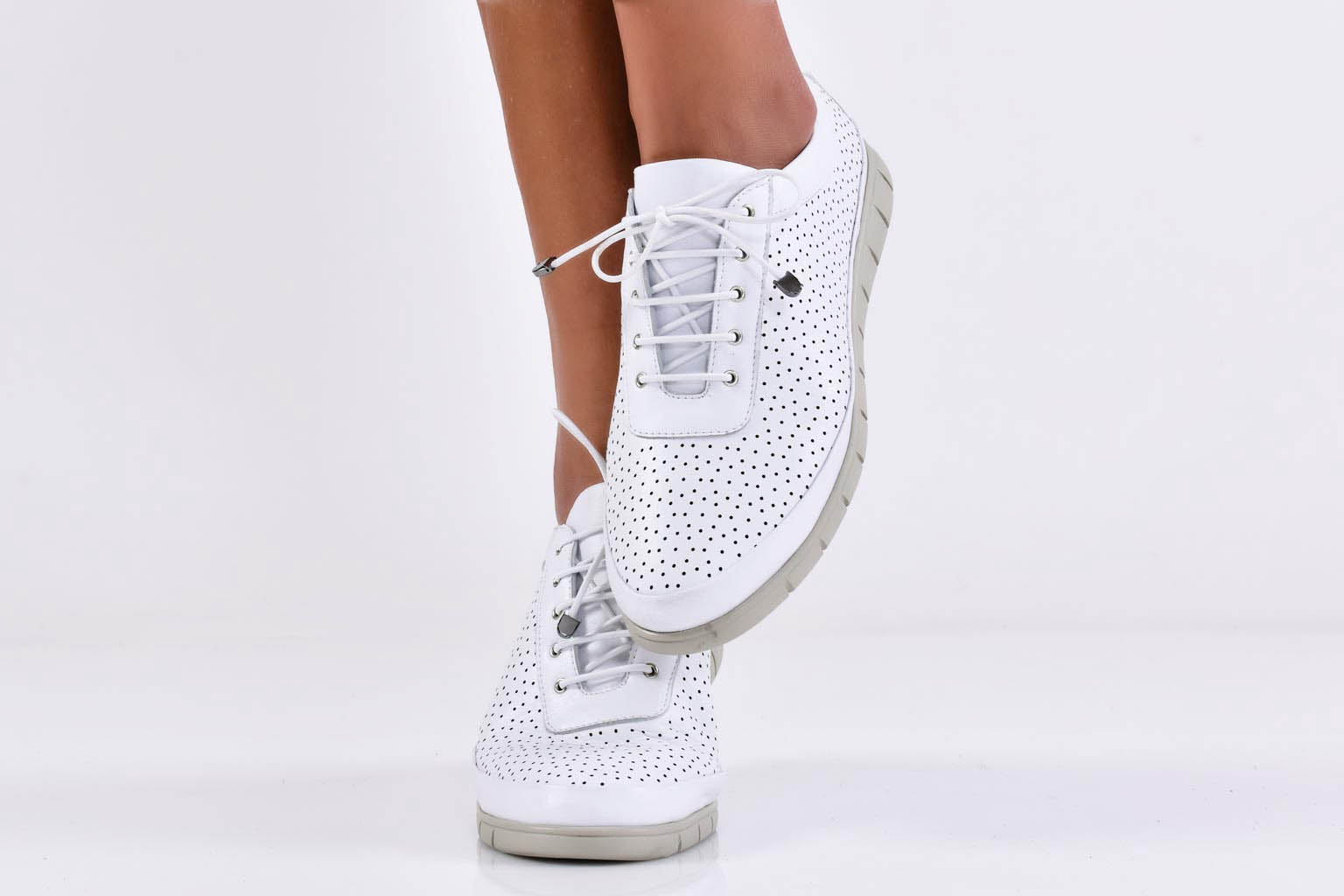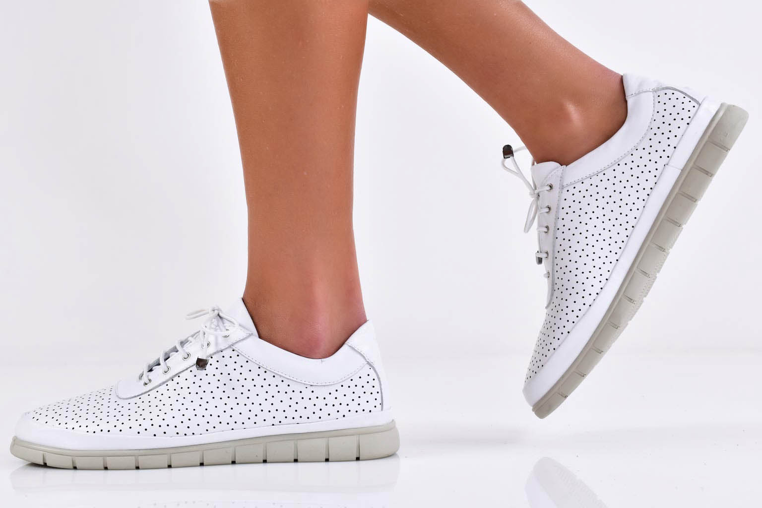 Дамски равни обувки естествена кожа бели EOBUVKIBG #502-6248