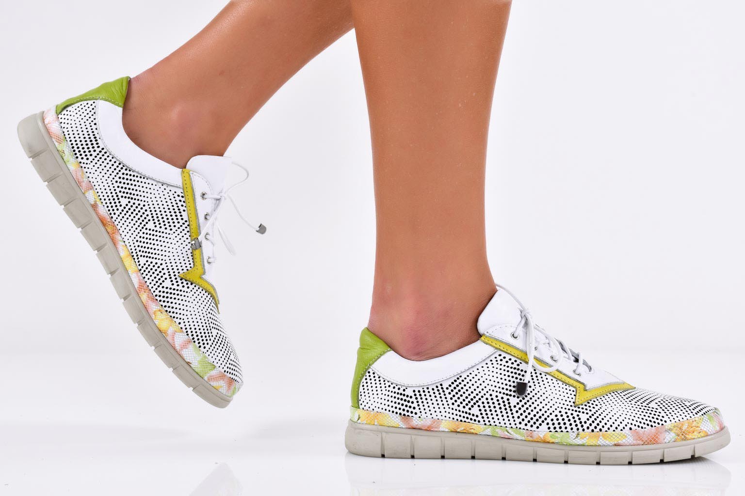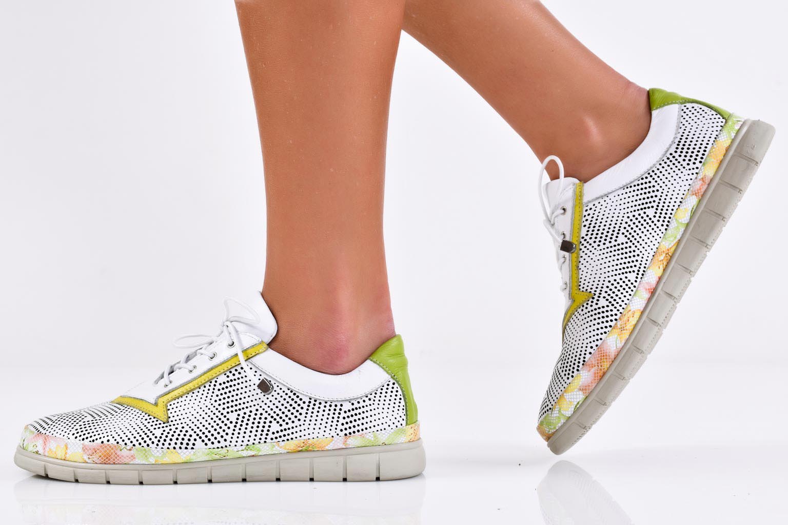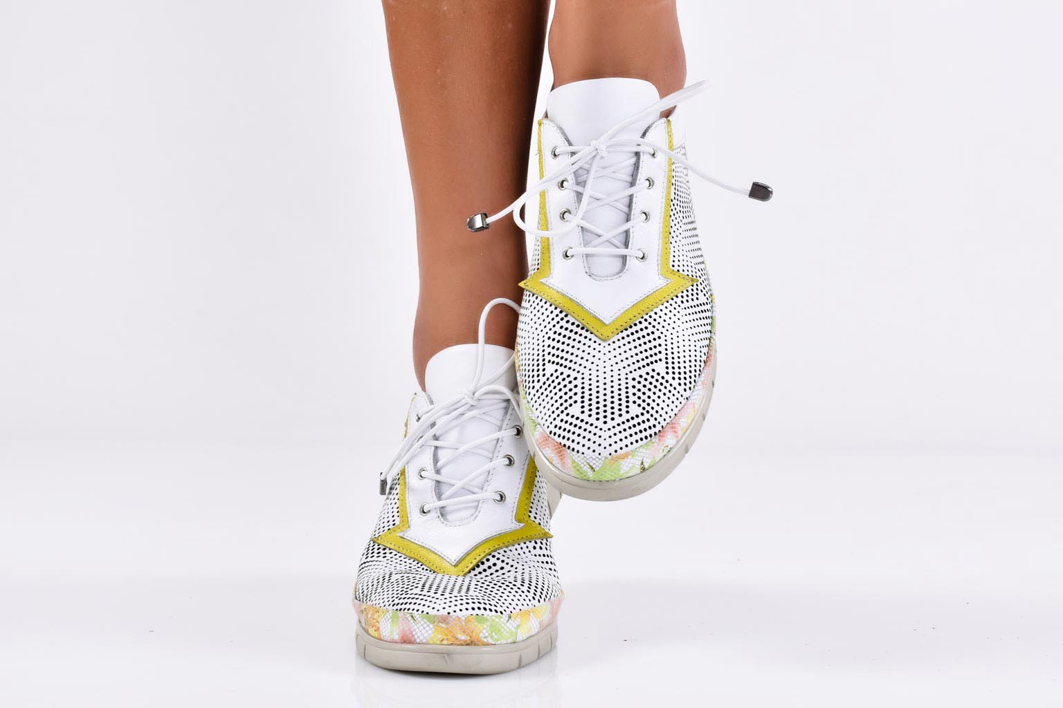Дамски равни обувки естествена кожа бели EOBUVKIBG #502-6237