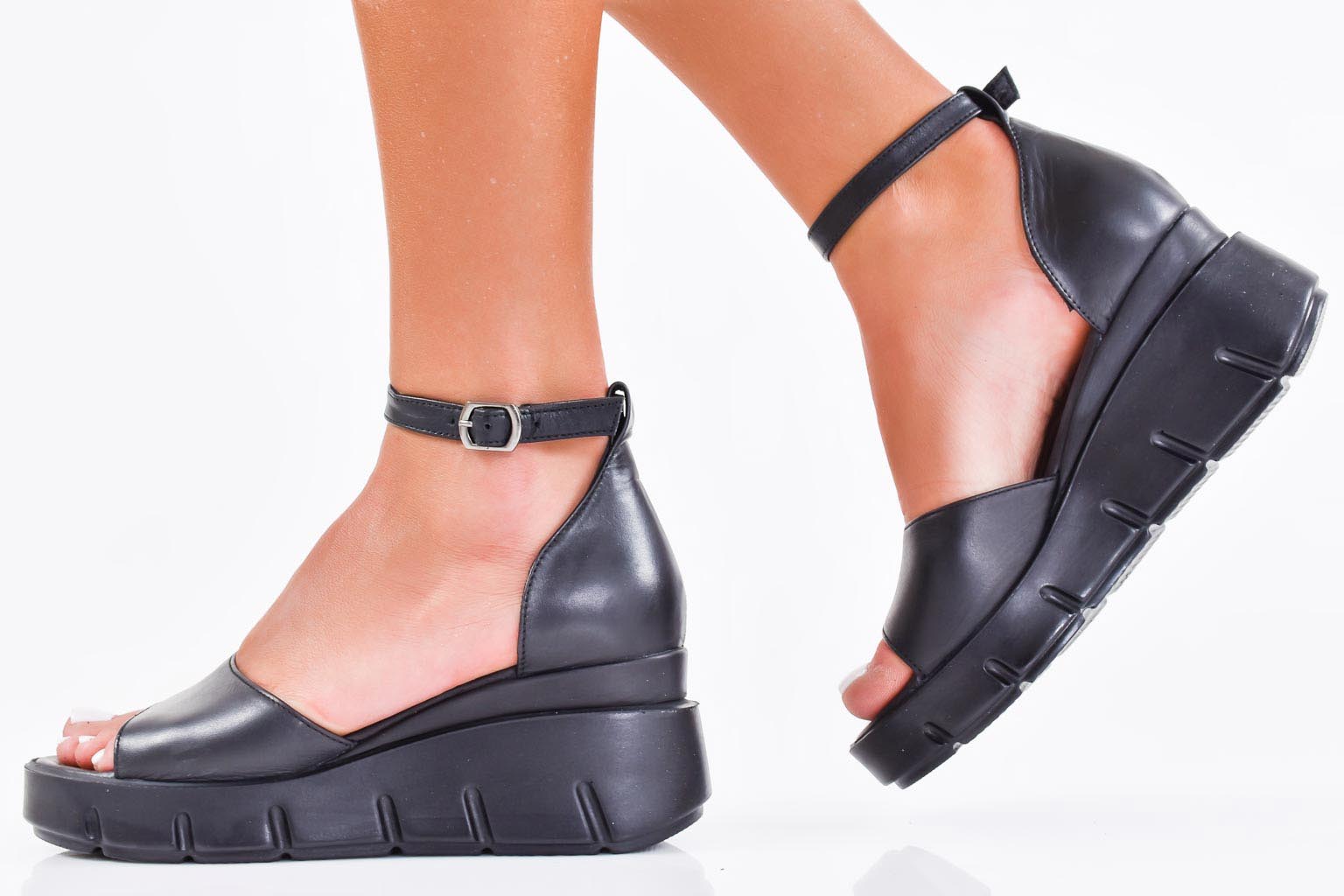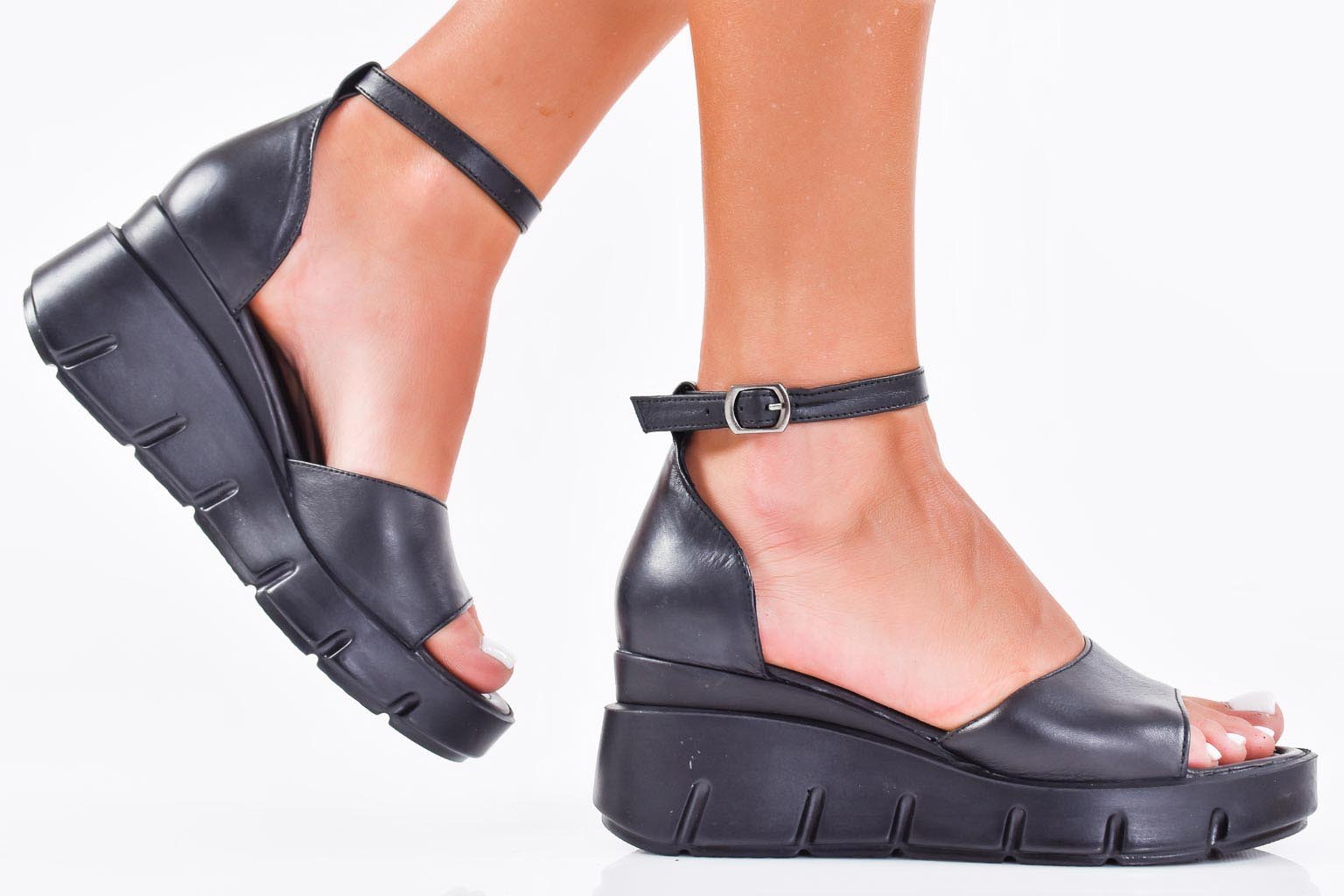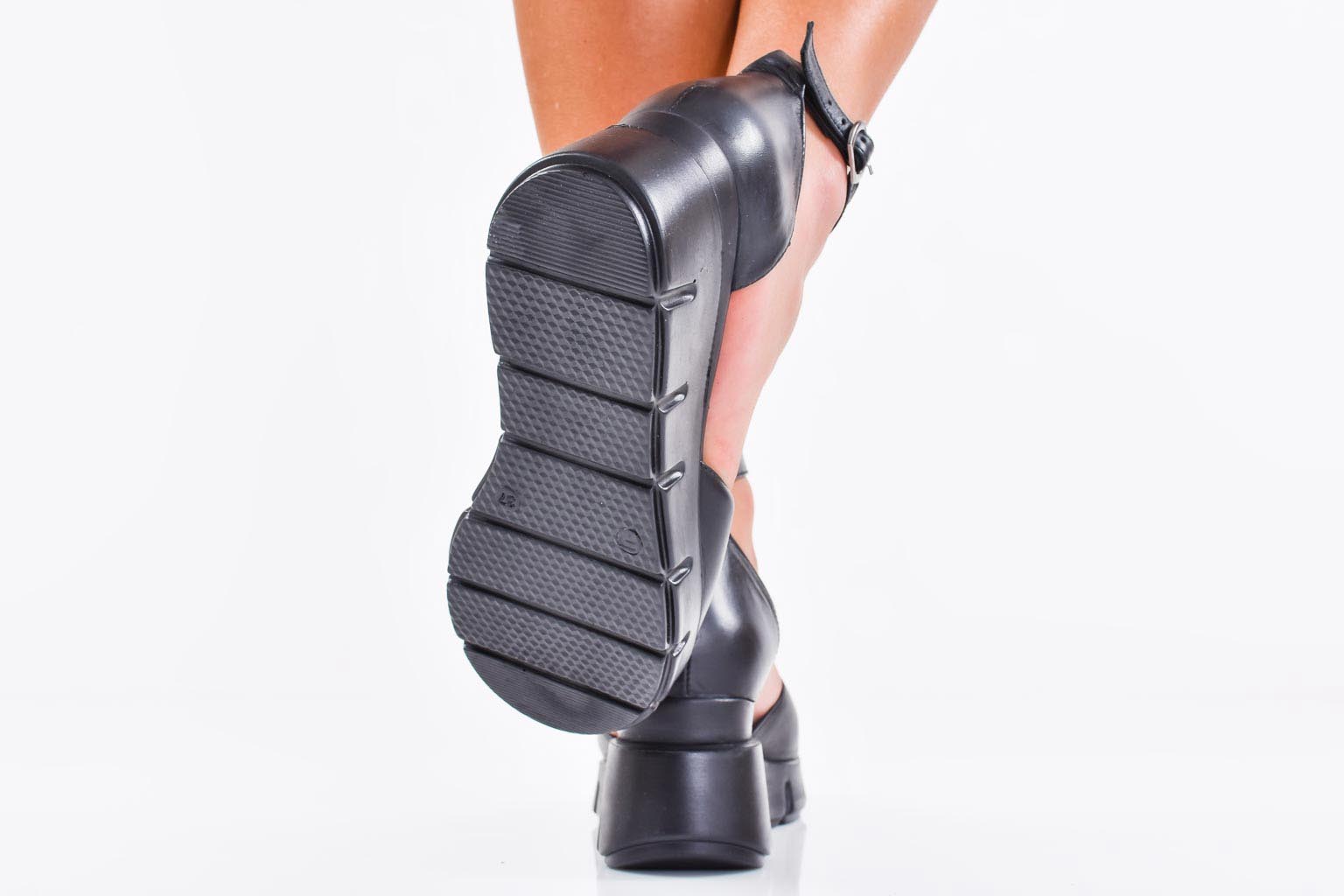 Имаме удоволствието да Ви представим нов модел дамски сандали на платформа EOBUVKIBG 502-6701 изработени изцяло от естествена кожа. Стелката е мека анатомична и комфортна,изработена изцяло от естествена кожа. Вътрешна част – естествен кожен хастар. Ортопедична стелка от естествена кожа е гарант за мекота и оптимална опора за свода на стъпалото, поддържайки го в правилната позиция при продължително ходене. Модела е решен с каишка за улесняване на обуването.Характеристика: Височина на на платформата отпред: 2,5 см. Височина на платформата отзад; 7см. Цвят;Черно. Номерация:36-40 Моделът е стандартен и отговаря на размерите.