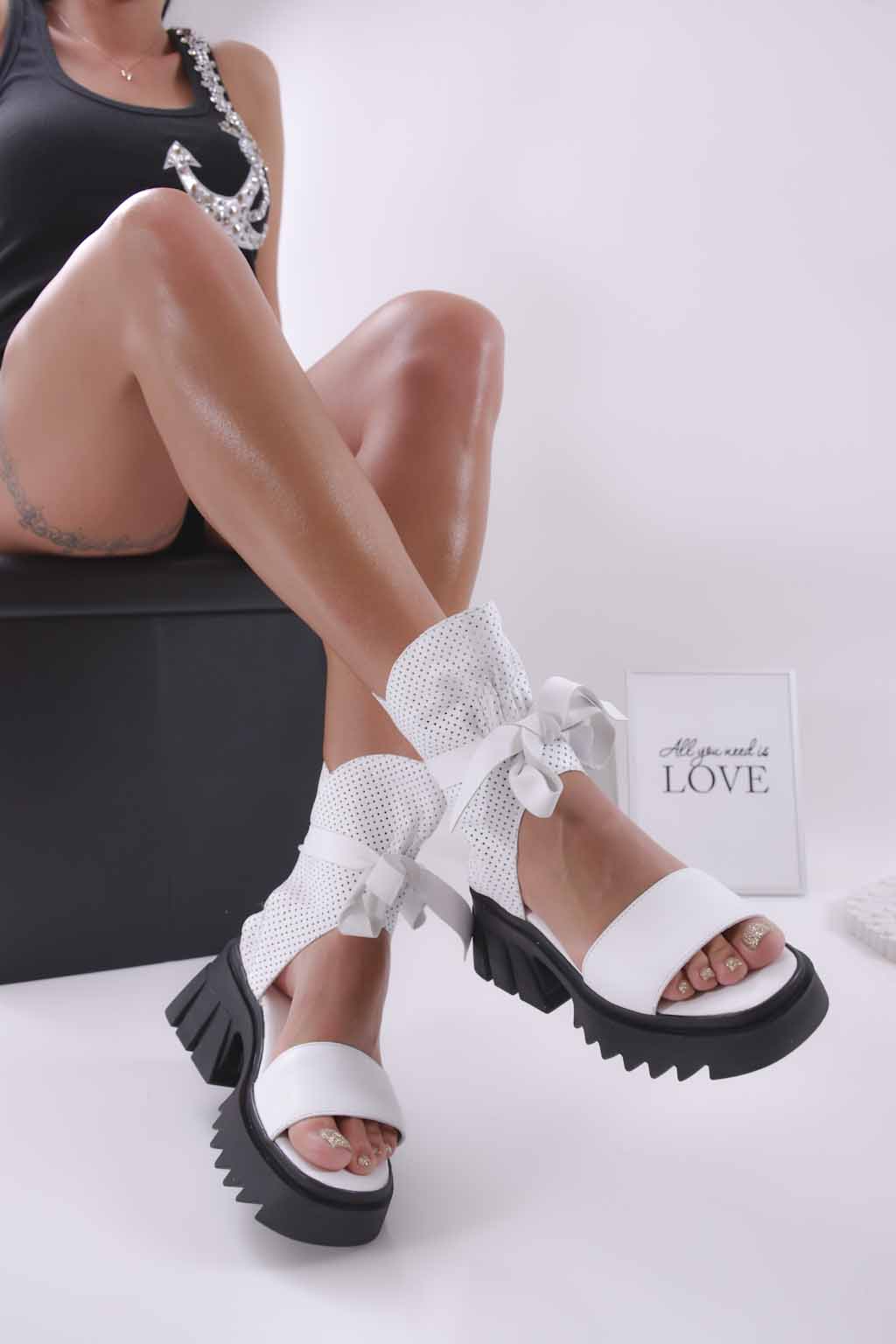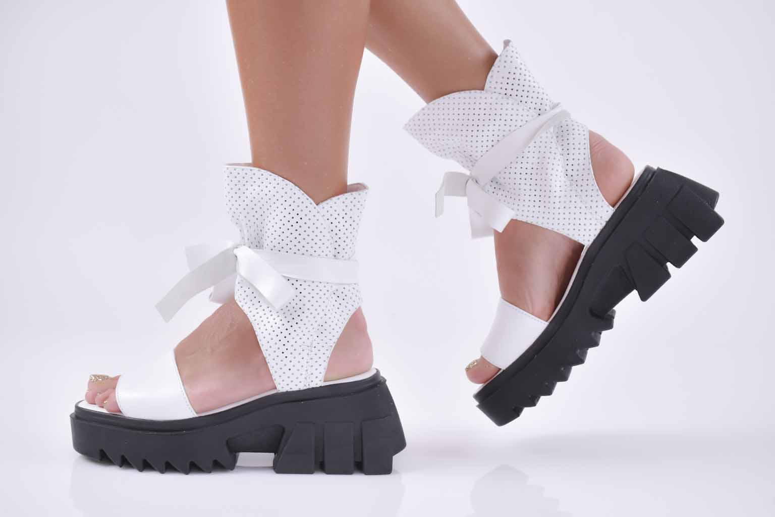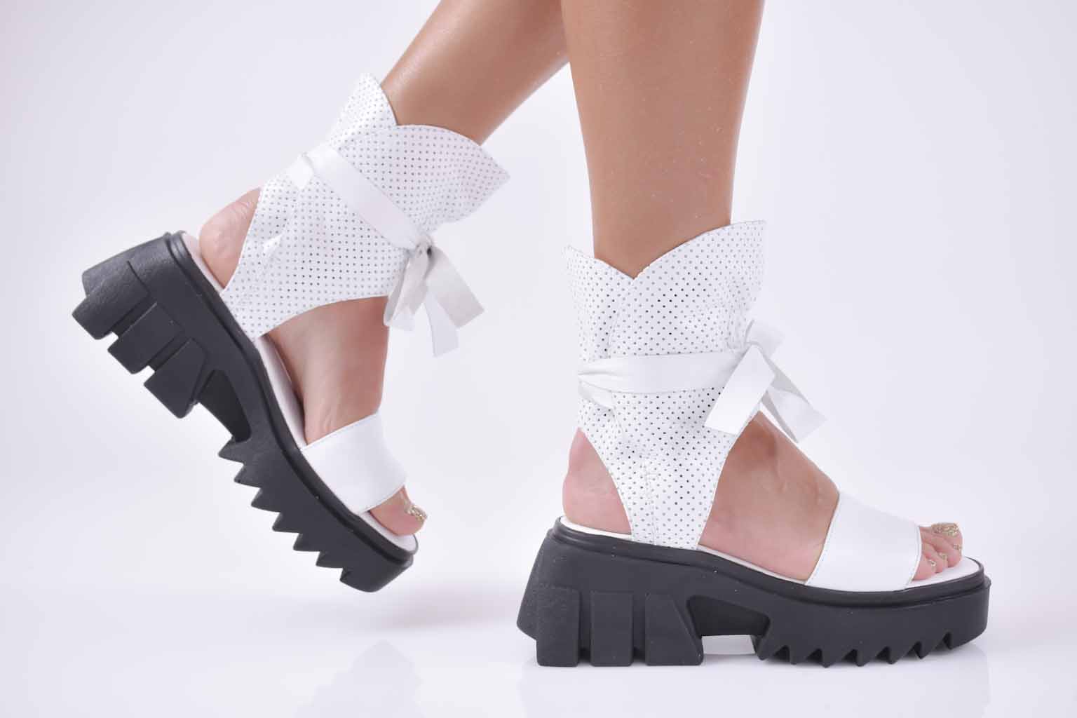 Сандали на платформа естествена кожа бели EOBUVKIBG #501-3614