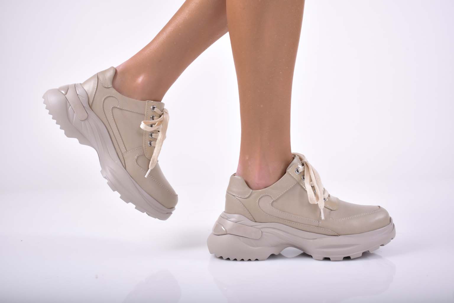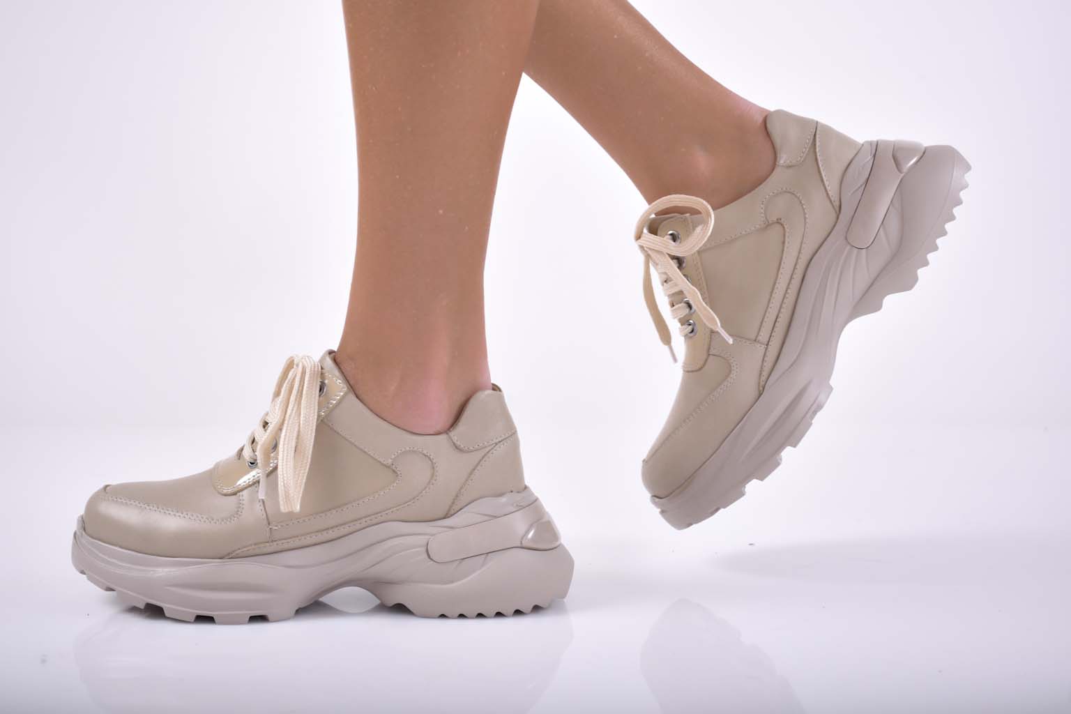 Дамски сникърси естествена кожа бежови EOBUVKIBG #502-3477