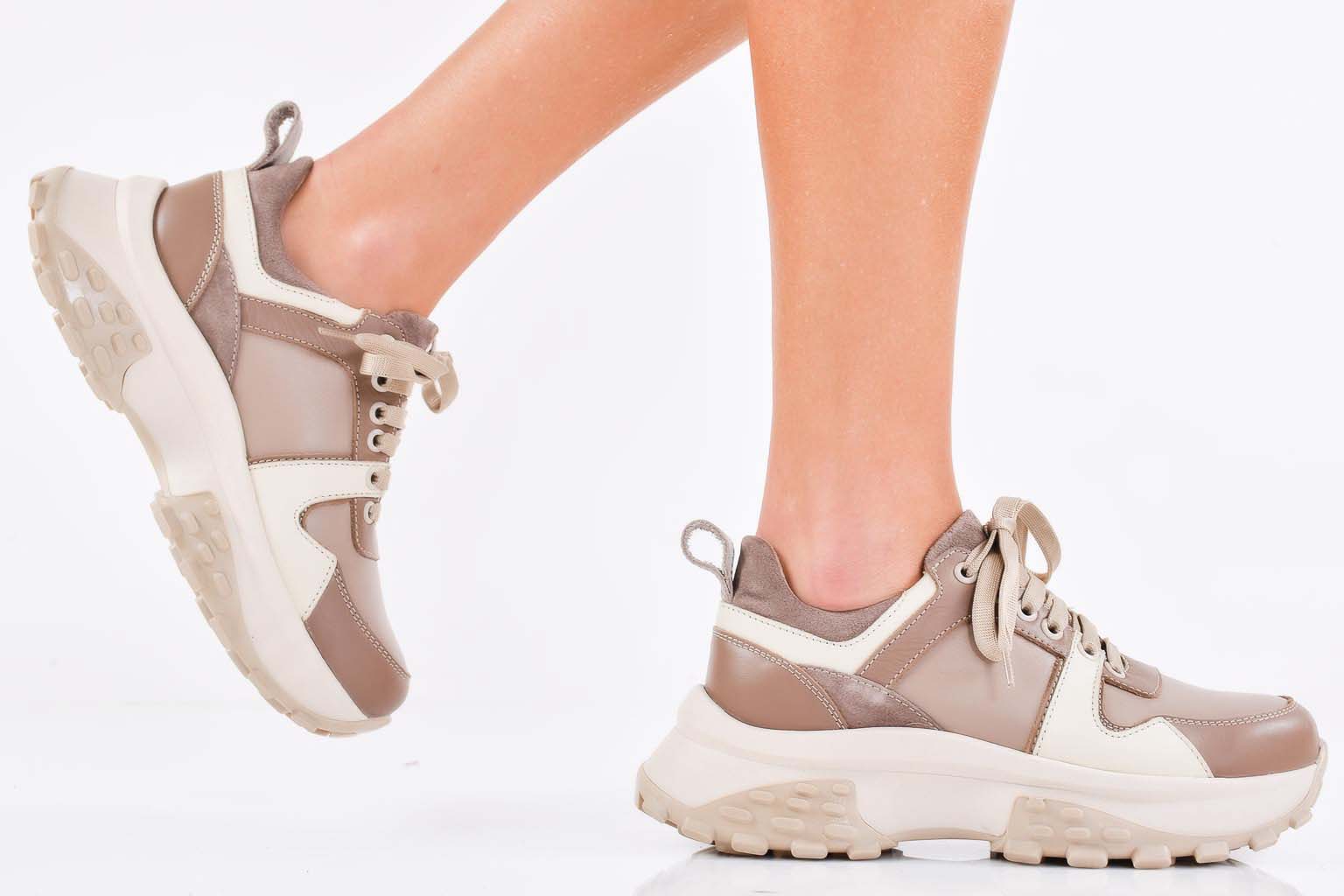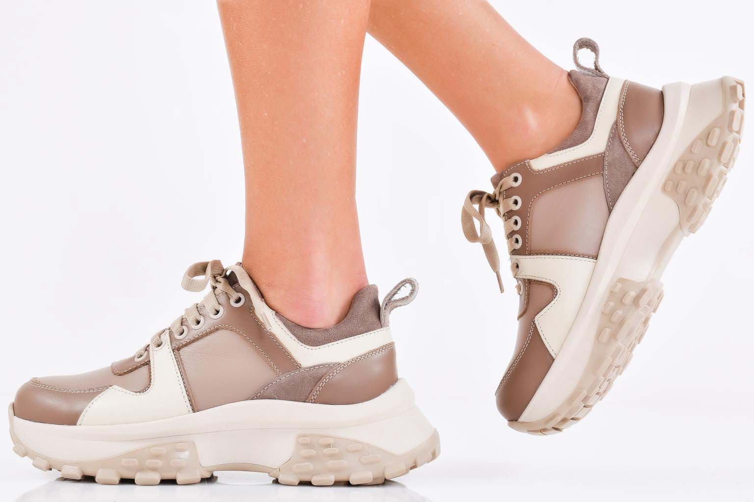 Дамски сникърси естествена кожа бежови EOBUVKIBG #502-7228