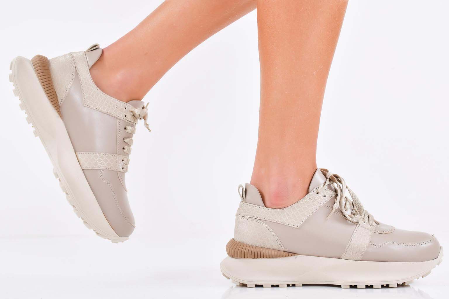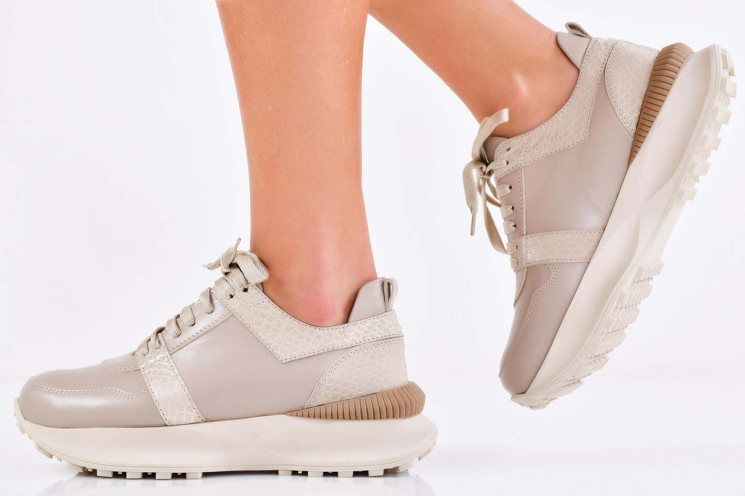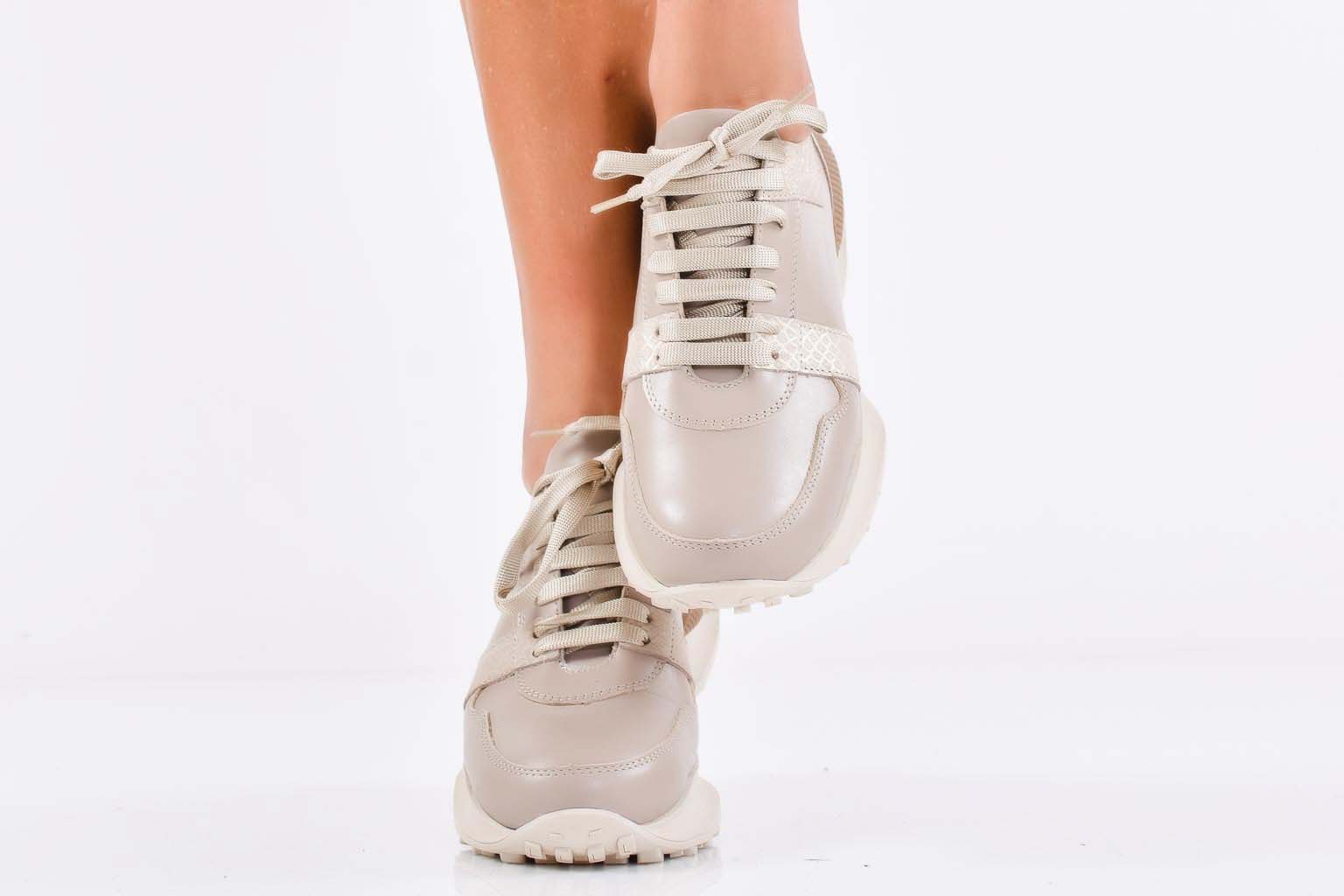 Дамски сникърси естествена кожа бежови EOBUVKIBG #502-7225