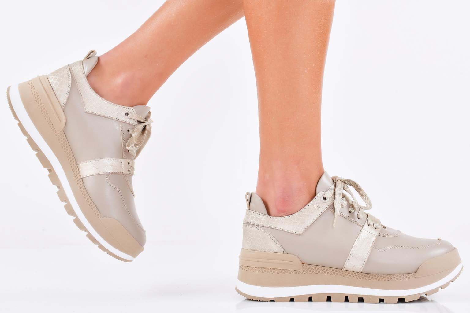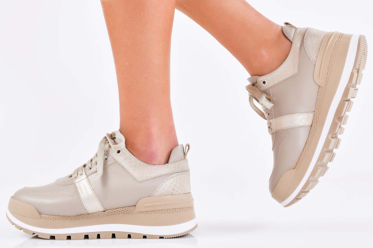 Дамски сникърси естествена кожа бежови EOBUVKIBG #502-7223